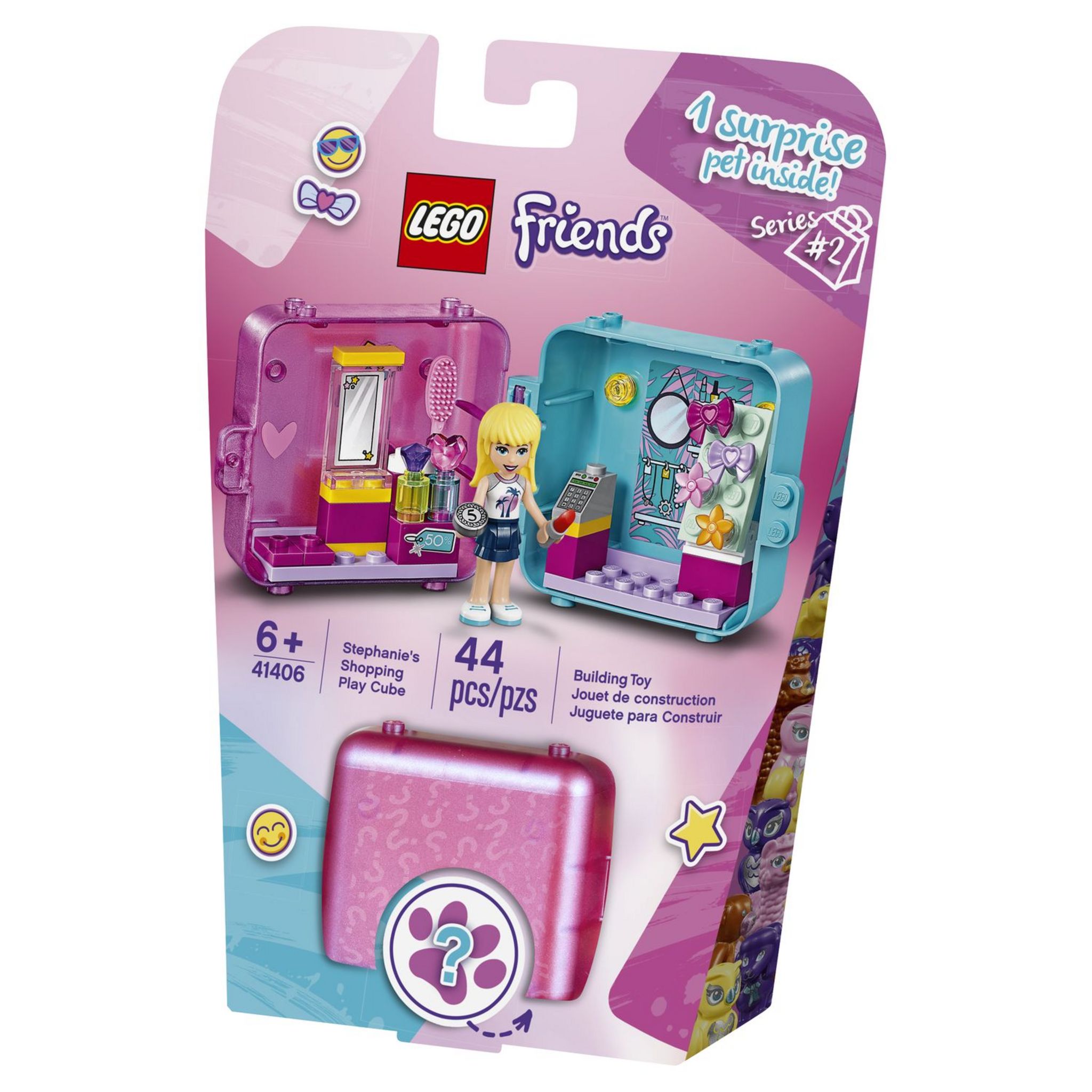Chaque cube de jeu LEGO Friends contient un animal mystère. Les enfants vont adorer les collectionner ! Ils aimeront aussi les possibilités de jeu offertes par ce cube. Les jouets du salon de beauté se détachent pour jouer en dehors de la boîte. Ces éléments peuvent aussi être fixés à la base du cube pour que des pièces ne se perdent pas lors des déplacements. Les deux côtés se séparent pour profiter du cube avec un(e) ami(e).