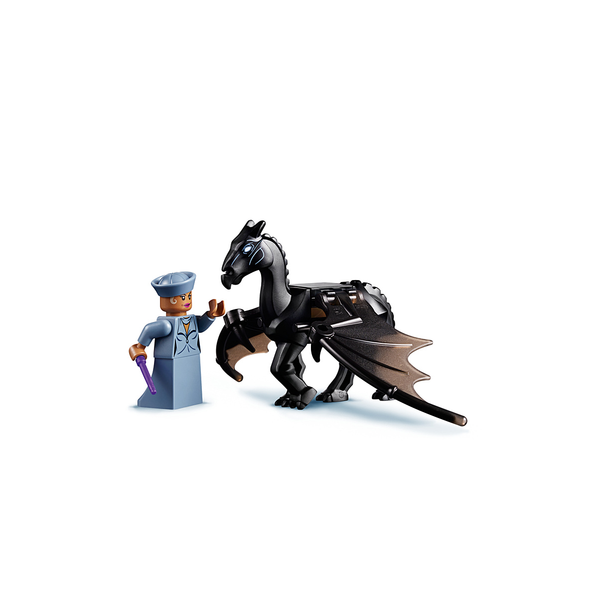 Qu'on ne se le cache pas, la réelle motivation concernant l'achat de ce set est le Sombral, qui est très joliment réalisé. Le carrosse est joli et plutôt détaillé, très facile à monter (les pièces sont très grosses). Au niveau des figurines, rien d'exceptionnel: Grindelwald n'est pas fidèle à celui vu dans cette scène (avec de longs cheveux une grosse barbe) ni même à celui vu dans le film (moustachu donc). On peut tenter de justifier cela en se disant que LEGO n'a pas eu accès à suffisamment de visuels du film pour travailler sa boîte en amont, ou pour laisser flamber le prix du Grindelwald de la série à collectionner... De son côté, Séraphine Piquery est très simple. Son chapeau aurait pu inclure quelques cheveux afin de ne pas lui donner un air chauve. Sa baguette rose reste exclusive à ce set. Le prix est assez élevé pour si peu de pièces (grosses néanmoins), plus de 22 centimes par pièces, le prix le plus correct me semble être 19.99€.