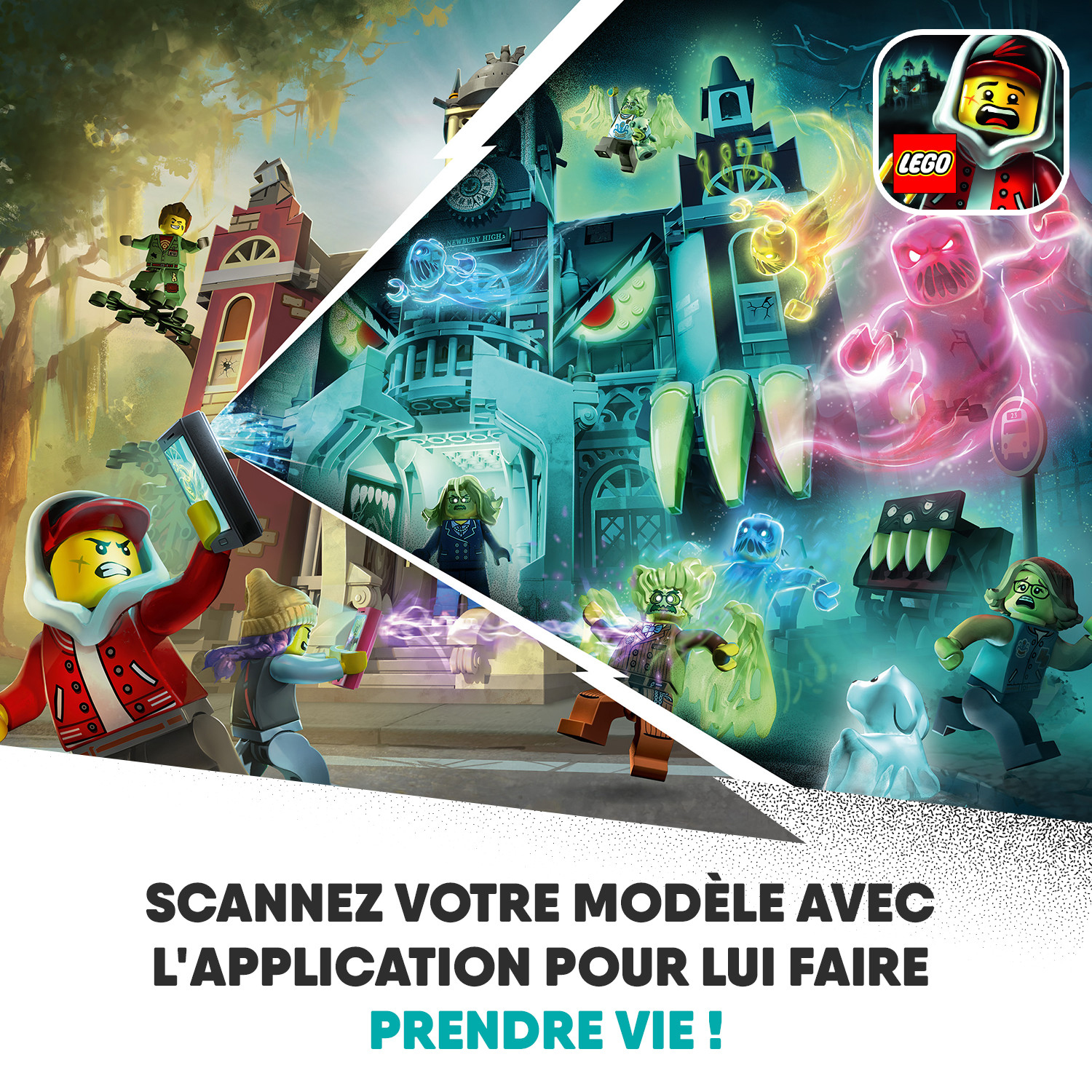 Les jeunes constructeurs se lancent dans une amusante aventure de chasse aux fantômes en réalité augmentée avec L'école hantée de Newbury LEGO® Hidden Side 70425. Ce jouet fascinant combine un modèle LEGO à construire et une application digitale, pour proposer une expérience de jeu totalement interactive. L'interaction avec le modèle physique entraîne l'apparition d'évènements dans l'application. Avec des mises à jour continues, un redoutable chef fantôme à combattre, des mystères à résoudre, des objets à trouver et des fantômes à capturer, ce jouet LEGO Hidden Side apporte au jeu LEGO une dimension inédite ! Le modèle est rempli de détails fabuleux propices à des heures de jeu imaginatif. Les enfants vont adorer réaliser cette construction sur le thème de l'école et jouer avec, puis tenter de vaincre les fantômes qui hantent le bâtiment. Les figurines des 2 héros, de Douglas Elton et de 4 autres personnages, ainsi qu'un adorable chien fantôme, contribuent à rendre ce jouet sur le thème de l'école encore plus passionnant.