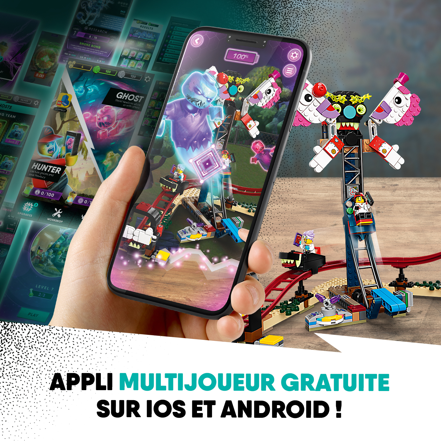 Ce modèle prend vie observé avec un appareil équipé de l'appli LEGO Hidden Side. Les enfants peuvent résoudre des mystères, chasser des fantômes et affronter le chef fantôme Tragico, dans un monde numérique. Et grâce aux montagnes russes, à la tour de chute et aux 5 figurines, les ingrédients sont réunis pour samuser avec des jeux de rôle !