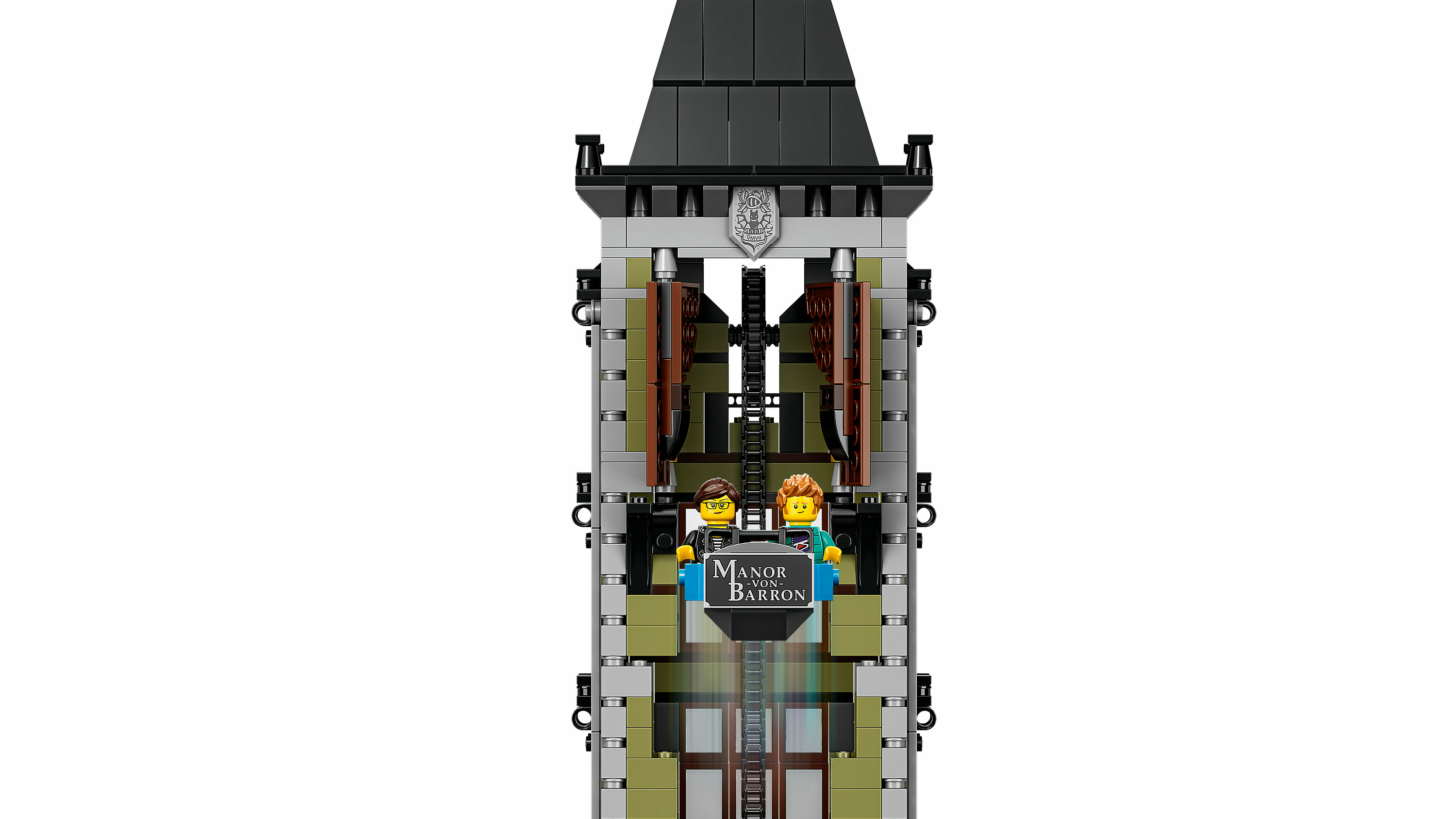 Les passionnés peuvent prendre le temps de construire cette impressionnante maison hantée avant d'explorer tous les détails complexes qu'elle renferme. La maison souvre, ce qui permet de lexplorer facilement et de découvrir une chute libre qui fonctionne, ainsi que des portes automatiques au sommet de la tour. Pour se faire peur, il suffit de regarder les portes dentrée hantées se fermer. Avec les composants LEGO Powered Up (disponibles séparément), il est possible de contrôler l'ascenseur à partir de l'application Powered Up.