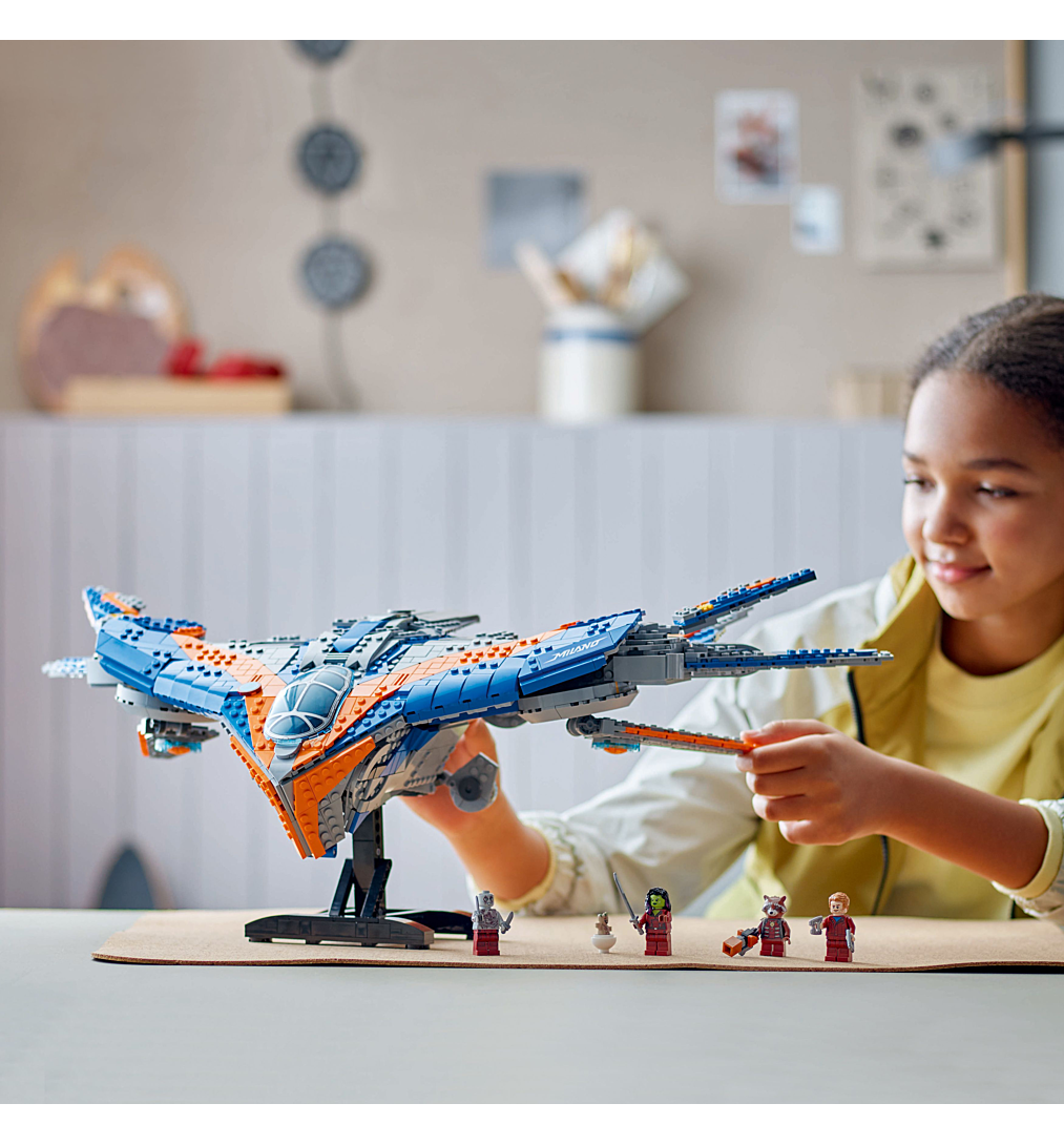 LEGO Marvel Les Gardiens de la Galaxie : le vaisseau Milan est un jouet de construction pour les fans d’Avengers à partir de 12 ans. Cet impressionnant vaisseau de classe M à construire, idéal pour jouer et superbe à exposer dans une chambre, comporte des détails authentiques du film culte. Inspiré du vaisseau du premier film Les Gardiens de la Galaxie, ce modèle inclut 6 ailes réglables et 4 propulseurs arrière mobiles. Le haut du vaisseau se soulève pour révéler un intérieur détaillé avec 3 zones distinctes : un poste de pilotage pouvant accueillir 3 minifigurines, un espace commun avec un siège supplémentaire et un lieu de stockage pour les armes, et une zone de repos avec un lit et un magnétophone (élément clé des films). Inclut les minifigurines LEGO de Star-Lord, Gamora, Drax et Rocket, ainsi qu’une figurine de Bébé Groot. Un support permet d’exposer le vaisseau une fois la construction terminée. Grâce à l’application LEGO Builder, les enfants peuvent zoomer et faire pivoter des modèles en 3D à l’aide de leur appareil numérique.