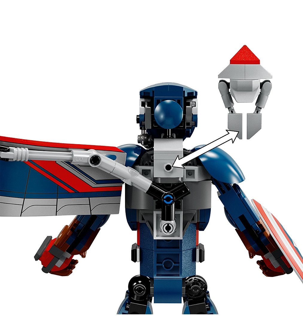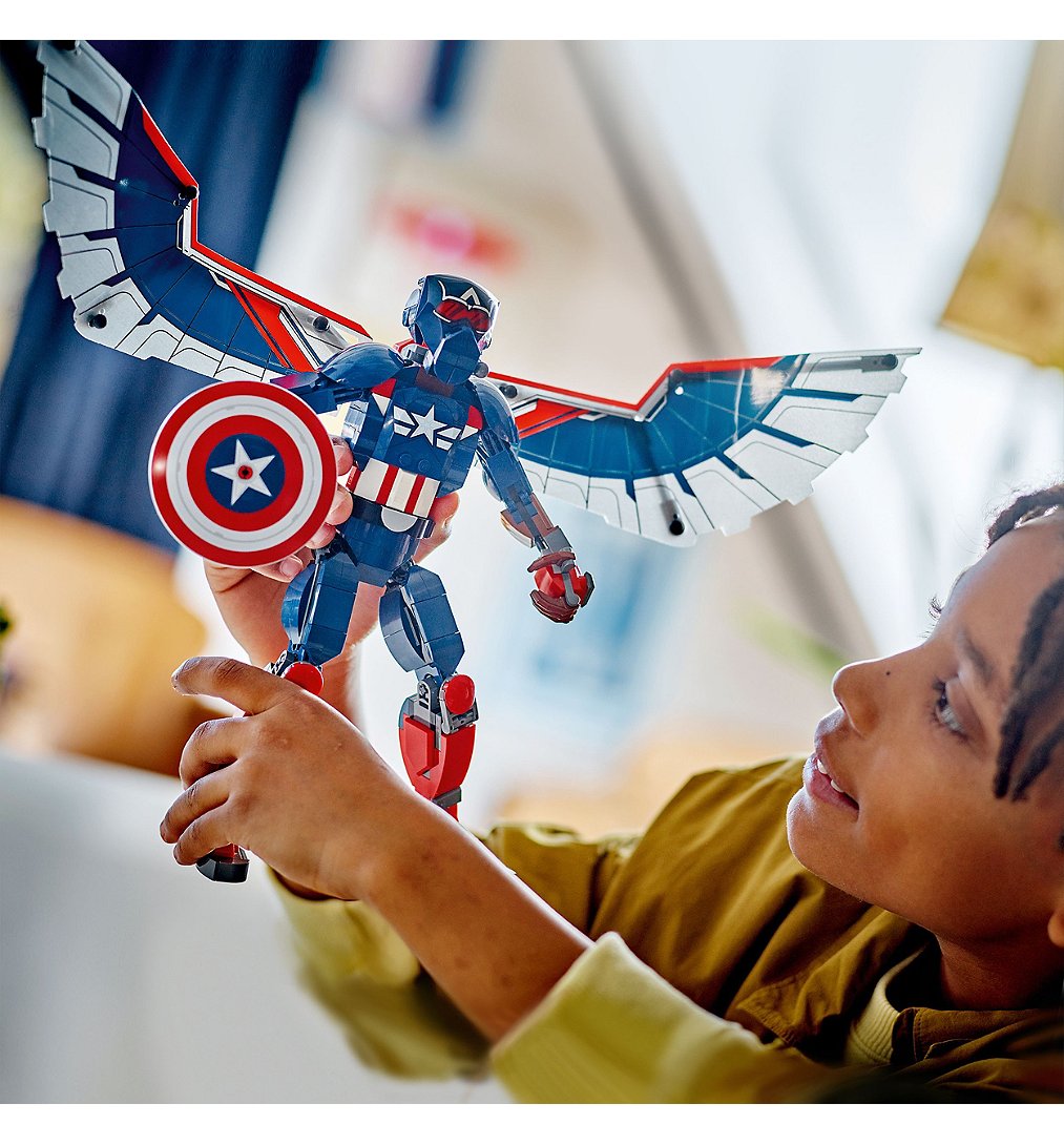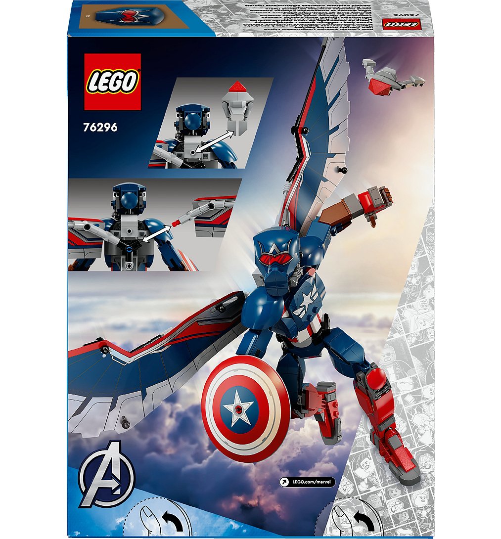 Placez l’action des films Marvel entre les mains des jeunes super-héros dès 8 ans avec la figurine du nouveau Captain America à construire LEGO Marvel (76296) réaliste et articulée. Dans cette version du super soldat de Marvel, le Faucon ailé prend le rôle de Captain America, enrichissant ainsi l’expérience de jeu des enfants. Ce jouet de construction LEGO de super-héros mesure plus de 28 cm de haut. Articulé aux épaules, aux bras, aux hanches et aux jambes, il peut prendre des postures réalistes inspirant le jeu de rôle. Les grandes ailes fixées au dos de la figurine peuvent être recourbées pour voler et se retirent facilement lorsque l’action revient sur terre ferme. La figurine de Captain America porte son bouclier mythique et le drone Redwing à construire fixé dans son dos peut être facilement retiré pour varier les options de jeu du jouet interactif. Pour ajouter une dimension numérique, les constructeurs peuvent zoomer, faire pivoter les sets en 3D et suivre leur progression avec l’application LEGO. Le jouet LEGO Figurine du nouveau Captain America à construire est une superbe idée de cadeau pour les enfants de 8 ans et plus, passionés par les bandes dessinées, les films et les personnages Avengers de Marvel. Toute l’action LEGO Marvel Avengers pour les enfants – La figurine de Captain America composée de 359 pièces mesure plus de 28 cm de haut : elle s’emporte partout pour des aventures épiques grand format. La figurine de Captain America mesure plus de 28 cm de haut : elle s’emporte partout pour des aventures épiques grand format Le set contient 359 pièces