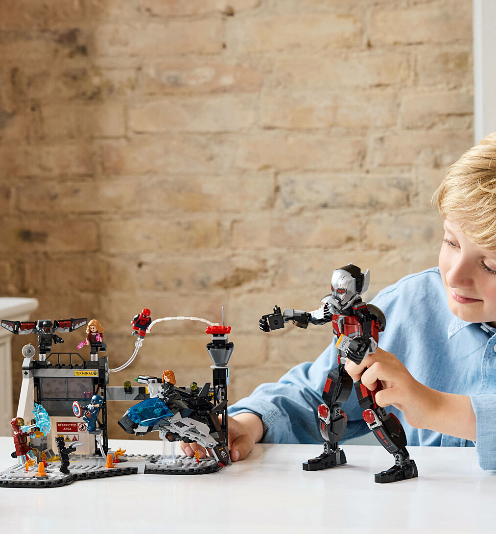 | Plus produit | Le combat de Captain America : Civil War LEGO® Marvel recrée au format LEGO la scène de bataille de l’aéroport du spectaculaire film Marvel. |