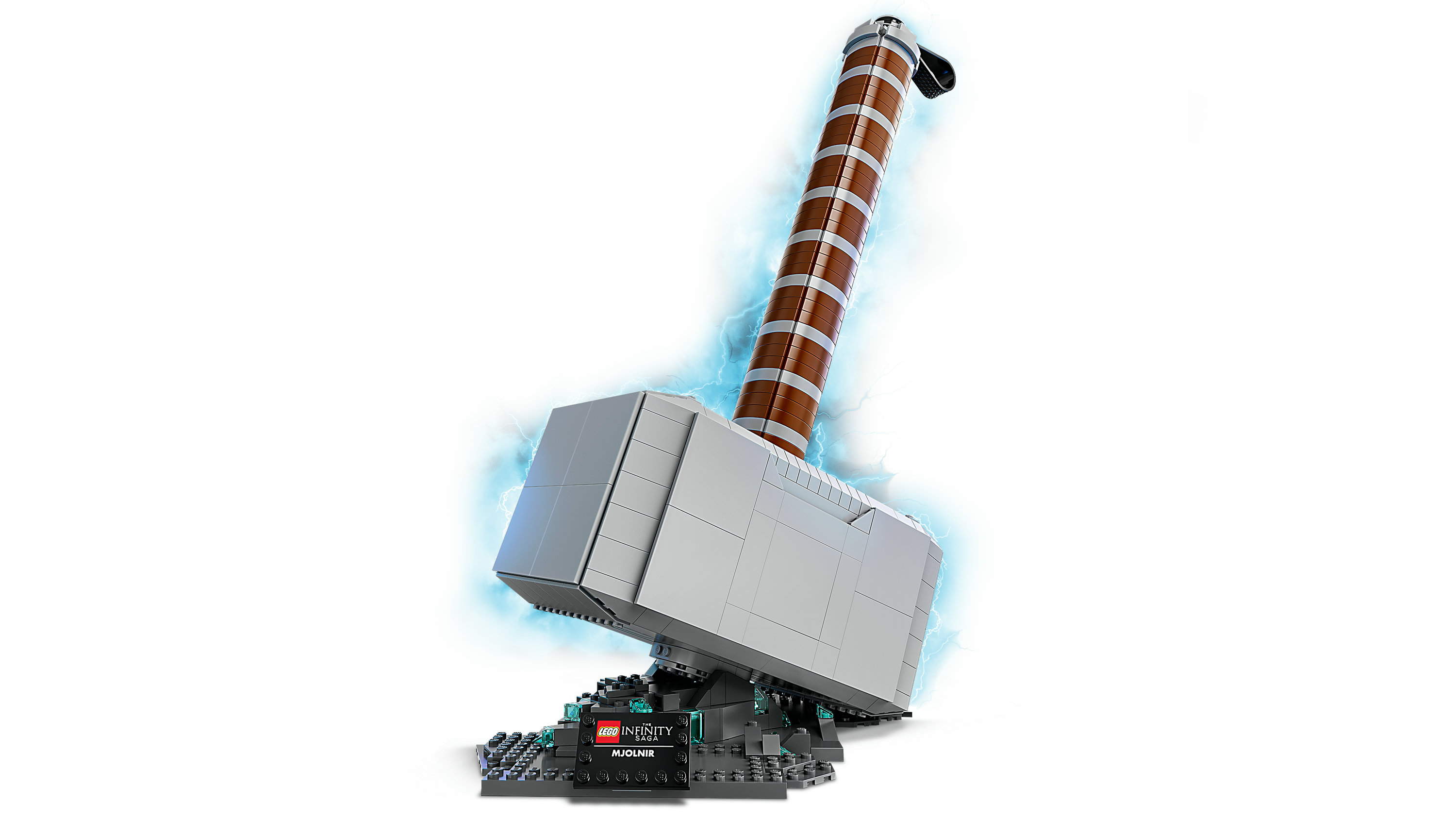 Les fans de Marvel reconnaîtront Mjölnir, l’arme magique aux effets dévastateurs utilisée dans les 23 films de La saga de l’infini de Marvel Studios. Cette reproduction réaliste du marteau légendaire mesure plus de 46 cm de haut et repose en toute sécurité sur un présentoir avec une plaque descriptive ornée du nom « Mjölnir » et du logo de La saga de l’infini. Le set inclut également une minifigurine de Thor et réserve une surprise : un espace de rangement dans la tête du marteau où se trouvent des modèles réduits du Gant de l’infini, du Tesseract et de la Flamme éternelle. Ce modèle complexe et enrichissant de 979 pièces continuera de faire votre bonheur et votre fierté longtemps après la construction.
