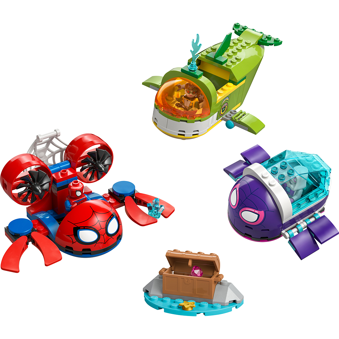 Plongez dans des aventures palpitantes avec le jeu de construction Spidey : les véhicules sous-marins (11207), conçu pour les fans de LEGO ǀ Marvel dès 4 ans. Incluant les minifigurines de Spidey, Ghost-Spider et Docteur Octopus, ainsi que 3 sous-marins, ce jouet Spidey stimule la créativité des enfants. Ce set LEGO inclut 3 véhicules : le sous-marin crabe de Spidey avec une toile géante, le sous-marin tortue de Ghost-Spider avec une carapace ouvrante et le sous-marin baleine de Docteur Octopus avec des fusils et une cachette pour le coffre au trésor. Ce jouet de construction est un beau cadeau d'anniversaire pour les fans de 4 ans et plus de la série Spidey et ses amis extraordinaires. Les instructions illustrées et colorées, les grandes briques de démarrage et les sachets séparés pour chaque maquette rendent la construction rapide et amusante. Les enfants peuvent zoomer, faire pivoter les modèles en 3D et suivre leur progression avec l’appli LEGO Builder.
