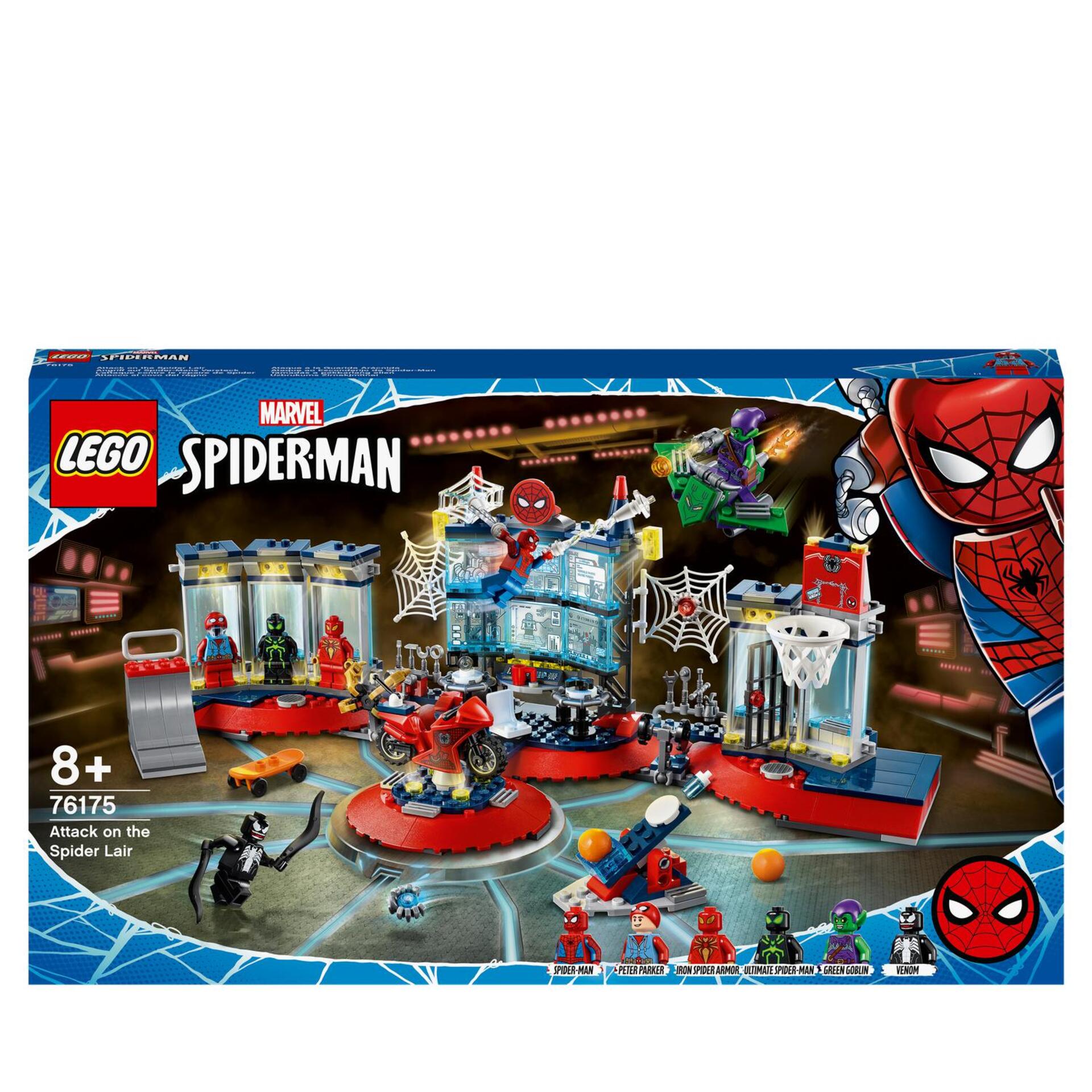 Lattaque contre le repaire de Spider LEGO® Marvel Spider-Man (76175) est la première version LEGO du formidable QG du super-héros, un lieu à mi-chemin entre un QG high-tech et une surprenante chambre dado !Tout ce dont les super-héros ont besoinMême les super-héros ont besoin de se reposer dans leur chambre parfois. Mais seul Spider-Man peut avoir une chambre comme celle-là ! Avec son ordinateur, sa PlayStation, son panier de basket et son lance-balles, son skate avec une rampe et son espace boissons, cest le paradis des ados. Mais ce nest pas tout : cest aussi un formidable QG de super-héros, qui contient lappareil photo de Peter Parker, du matériel dentraînement, une moto, le costume dIron Spider, des armes et même une prison. Tous ces accessoires savèreront très utiles lorsque le Bouffon Vert et Venom feront irruption.