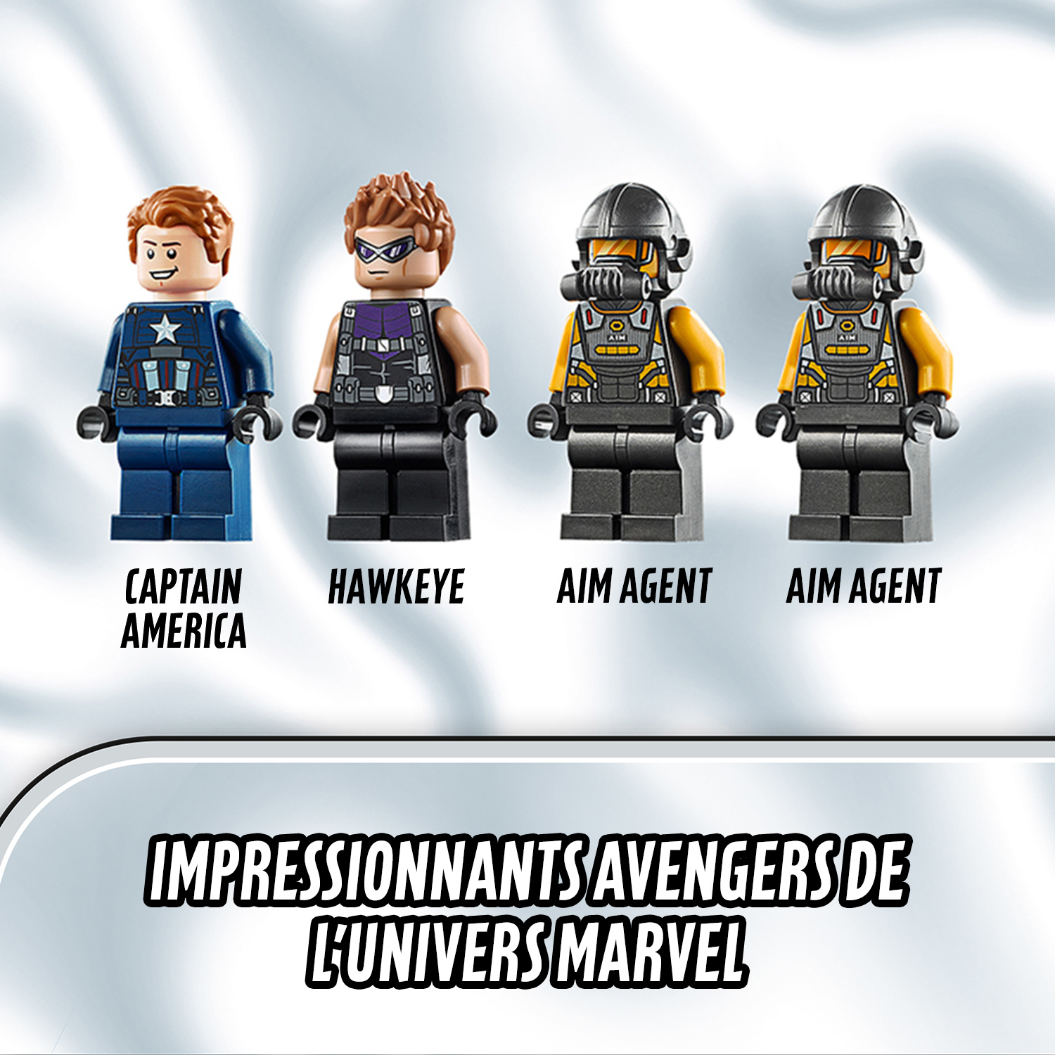 | La boîte contient | • Les petit super-héros s’approprient l’exaltation des films Marvel Avengers ! Ce set avec Captain America et Hawkeye inclut des véhicules et des figurines fascinantes, et de l'action comme l’aiment les enfants. Idéal pour jouer et à exposer. Avec 4 figurines (janvier 2020) – Captain America, Hawkeye et 2 agents de l'A.I.M. – une moto à trois roues, un drone et le camion des Avengers, les enfants peuvent créer des scènes de combat épiques dignes des super-héros. • Pour recréer leurs scènes de films préférées ou inventer leurs propres aventures, les fans de Marvel Avengers peuvent utiliser ce set de jeu d’innombrables façons. Tout peut arriver avec autant de fonctionnalités et de personnages fascinants. • Formidable cadeau pour les super-héros en herbe de 7 ans et plus ou les enfants qui souhaitent agrandir leur collection de sets de jeu LEGO® Marvel Avengers. Rapide à assembler, ce set est une source illimitée d'amusement et d'inspiration. • Le camion des Avengers, qui mesure plus de 17 cm de long et 11 cm de haut avec son fusil déployé, offre un jeu à grande échelle avec les super-héros. Idéal pour défier les agents de l’A.I.M. ou être combiné à d'autres sets LEGO® Marvel. • Aucune pile n’est requise. Les enfants s’amusent à manipuler en utilisant leur propre imagination. Ce jeu stimulant est donc accessible partout et à tout moment. Et parce qu'il fonctionne sans pile, l'amusement ne s'arrête jamais ! • Les enfants peuvent plonger directement dans l'assemblage du set ou utiliser les instructions simples pour démarrer. Et lorsque l’action est terminée, les véhicules et les figurines ont fière allure exposés dans une chambre d’enfant. • Les sets de jeu et figurines LEGO® représentent pour les jeunes super-héros une source d'inspiration et de jeu imaginatif. Pour revivre des scènes de films ou inventer ses aventures, les sets LEGO Marvel Avengers sont de formidables cadeaux. • Les jouets LEGO® sont conformes aux normes industrielles les plus élevées et à nos propres critères de qualité. Les briques LEGO sont parfaitement compatibles entre elles et s’assemblent et se séparent très facilement, et cela depuis 1958. • Le groupe LEGO soumet tous les éléments et briques LEGO® à des tests de chute, pression, torsion, chaleur et autres pour vérifier qu'ils sont conformes aux normes de qualité et de sécurité. Les parents sont ainsi certains que les jouets sont sûrs. |