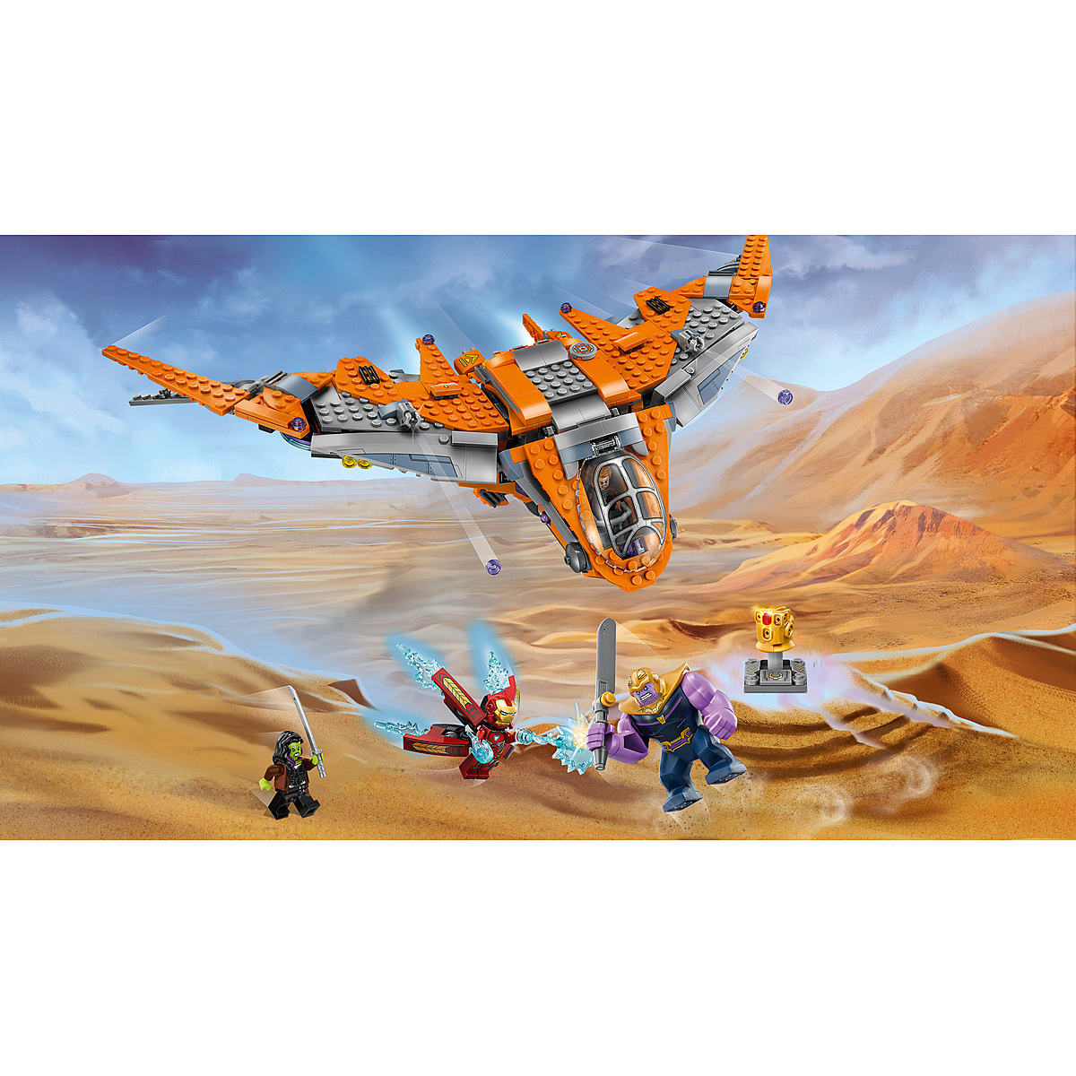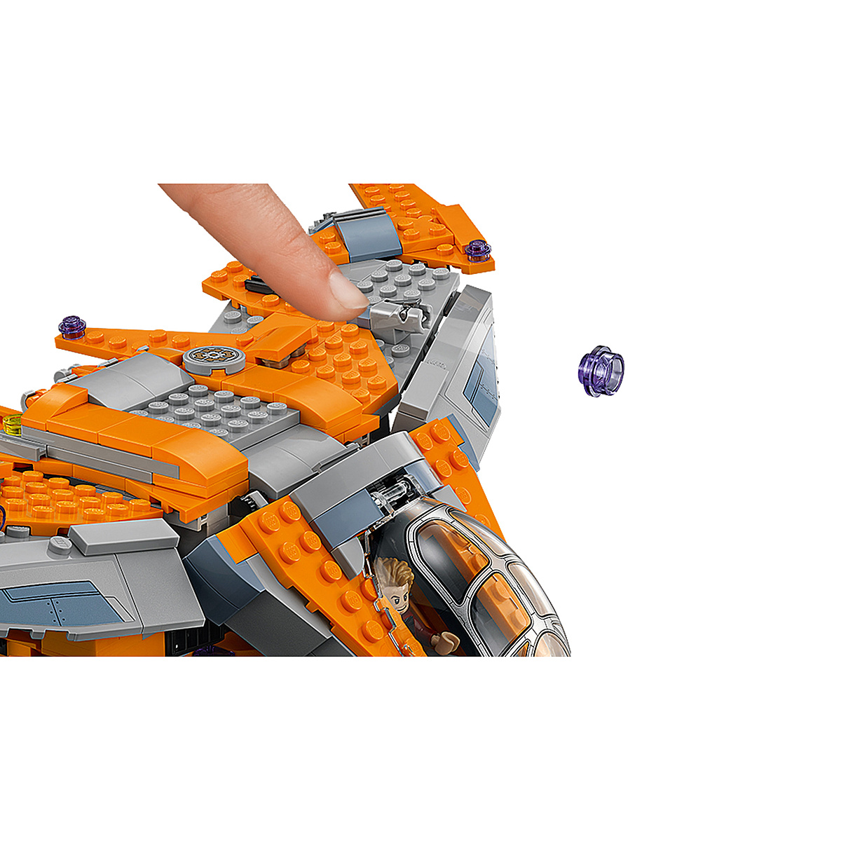 Rejoins la bataille pour le Gant de linfini avec les Avengers dans cet ensemble LEGO® Marvel Super Heroes 76107 Le combat ultime de Thanos ! Utilise les fusils à tenons du vaisseau des gardiens pour tirer sur Thanos. Ouvre le cockpit et mène laffront avec le scooter de lespace aux côtés de Star-Lord et de Gamora. Esquive les coups de lénorme épée de Thanos et utilise les explosions de puissance dIron Man pour renverser le Titan. Empare-toi du Gant de linfini et envole-toi en célébrant ta victoire !