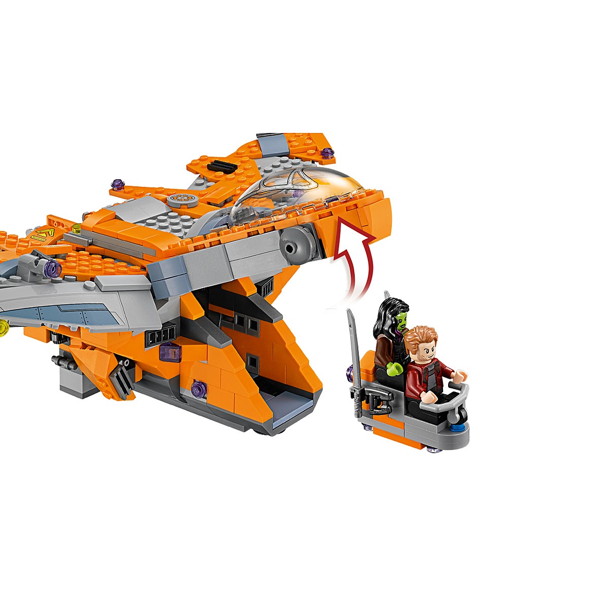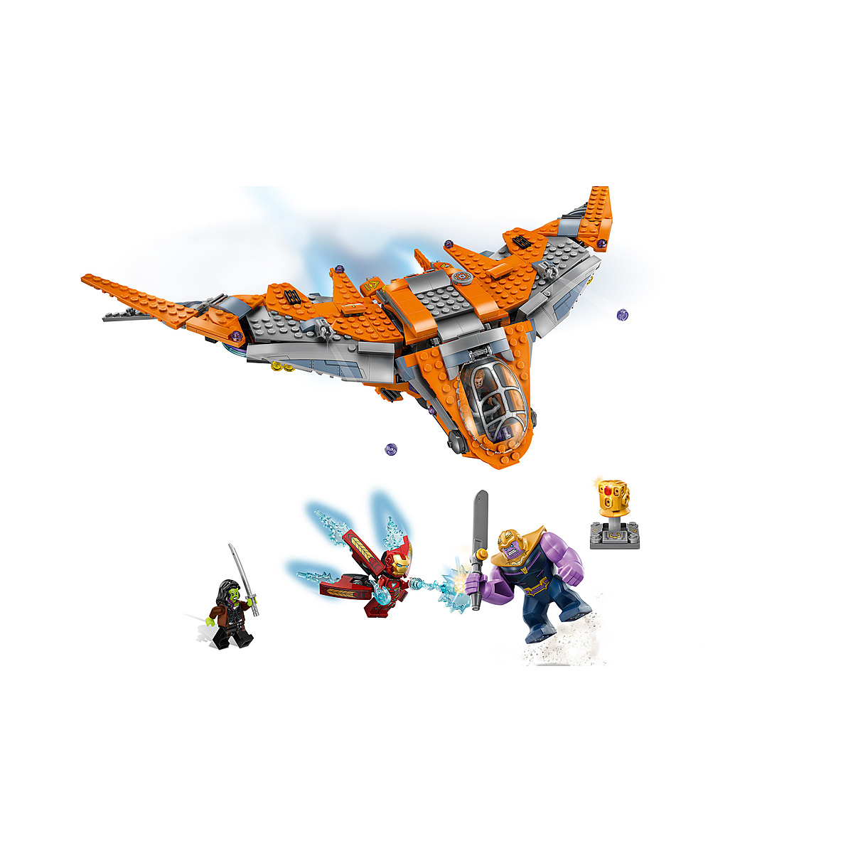 Mon premier set pour les lego marvel et je ne regrette rien. La construction es amusante et bien réfléchis. Le vaisseau es magnifique et assez gros. Pour conpléter le vaisseau je recommande le set La quête de l'arme de Thor. Nous avons Thanos, Star lord, Gamora, Iron man et le gant de l'infini. Je compte bien compléter mon gant pour posséder toutes les pierres ! Je recommande fortement.