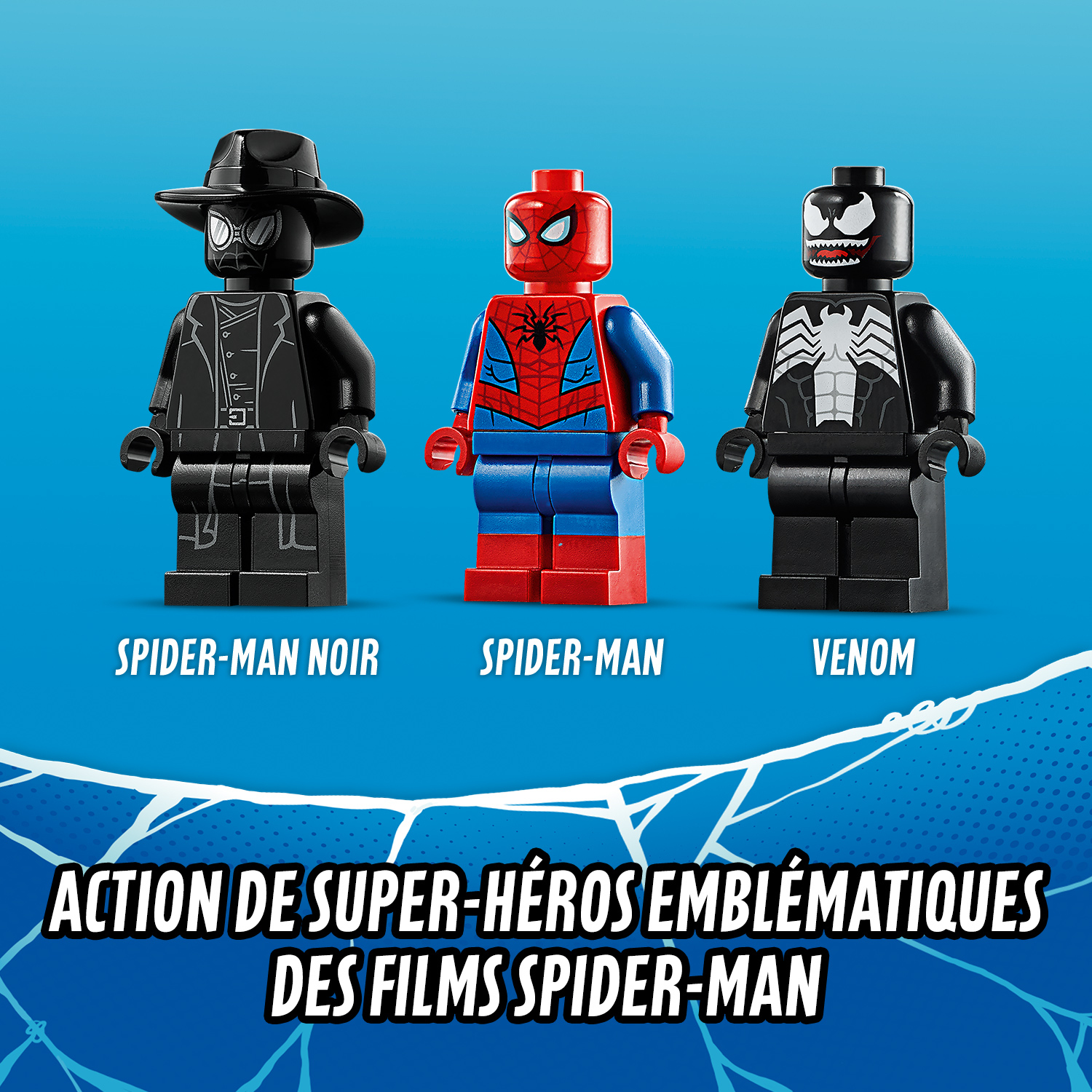 | Plus produit | Les jeunes super-héros rejoignent Spider-Man Noir à bord de son avion pour lancer une attaque contre le maléfique Venom, qui a piégé Spider-Man entre les griffes de son monstrueux robot à 4 bras. |