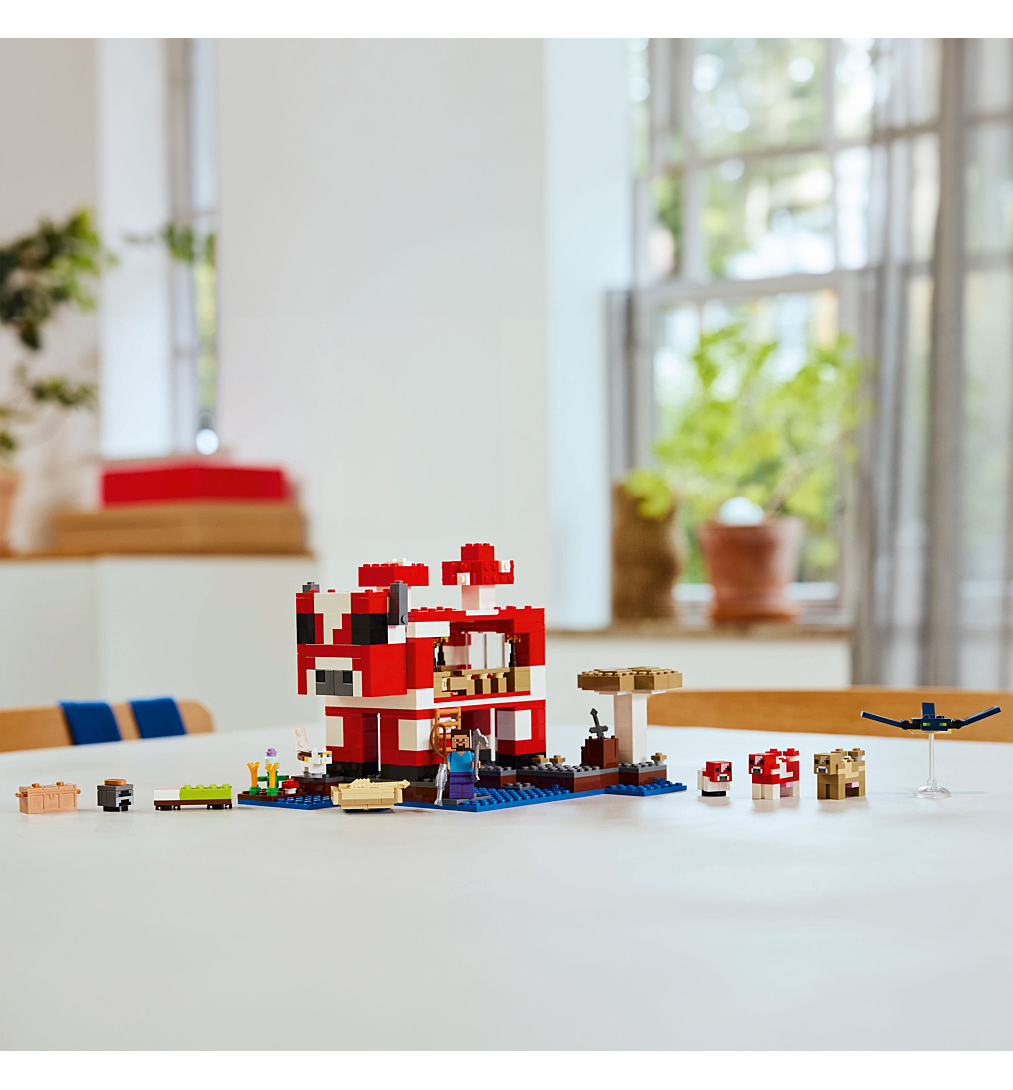 | Plus produit | LEGO® Minecraft® La maison des Champimeuhs invite à créer une maison et contient des cultures, un Phantom à combattre et des accessoires du jeu vidéo. |