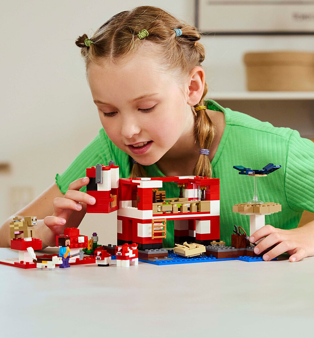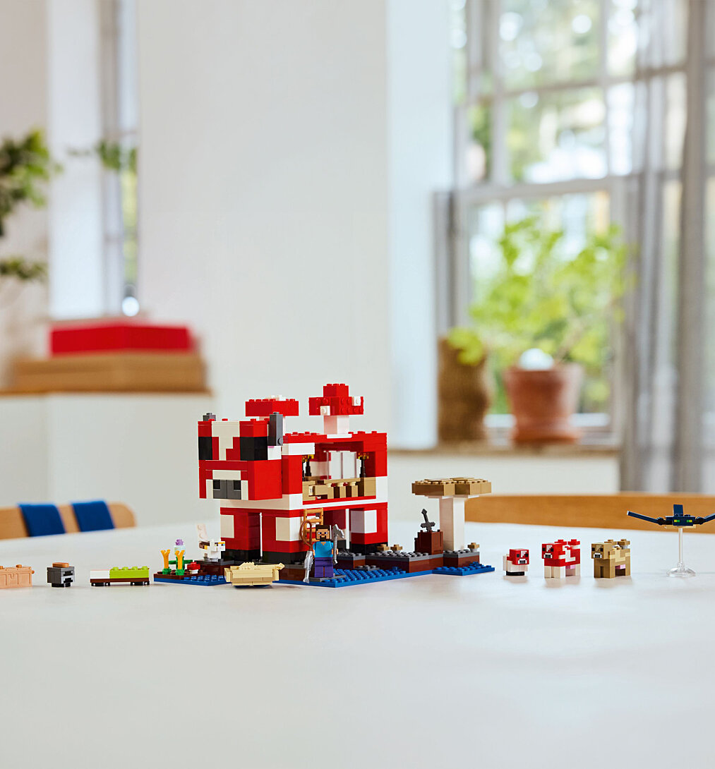 | Plus produit | LEGO® Minecraft® La maison des Champimeuhs invite à créer une maison et contient des cultures, un Phantom à combattre et des accessoires du jeu vidéo. |