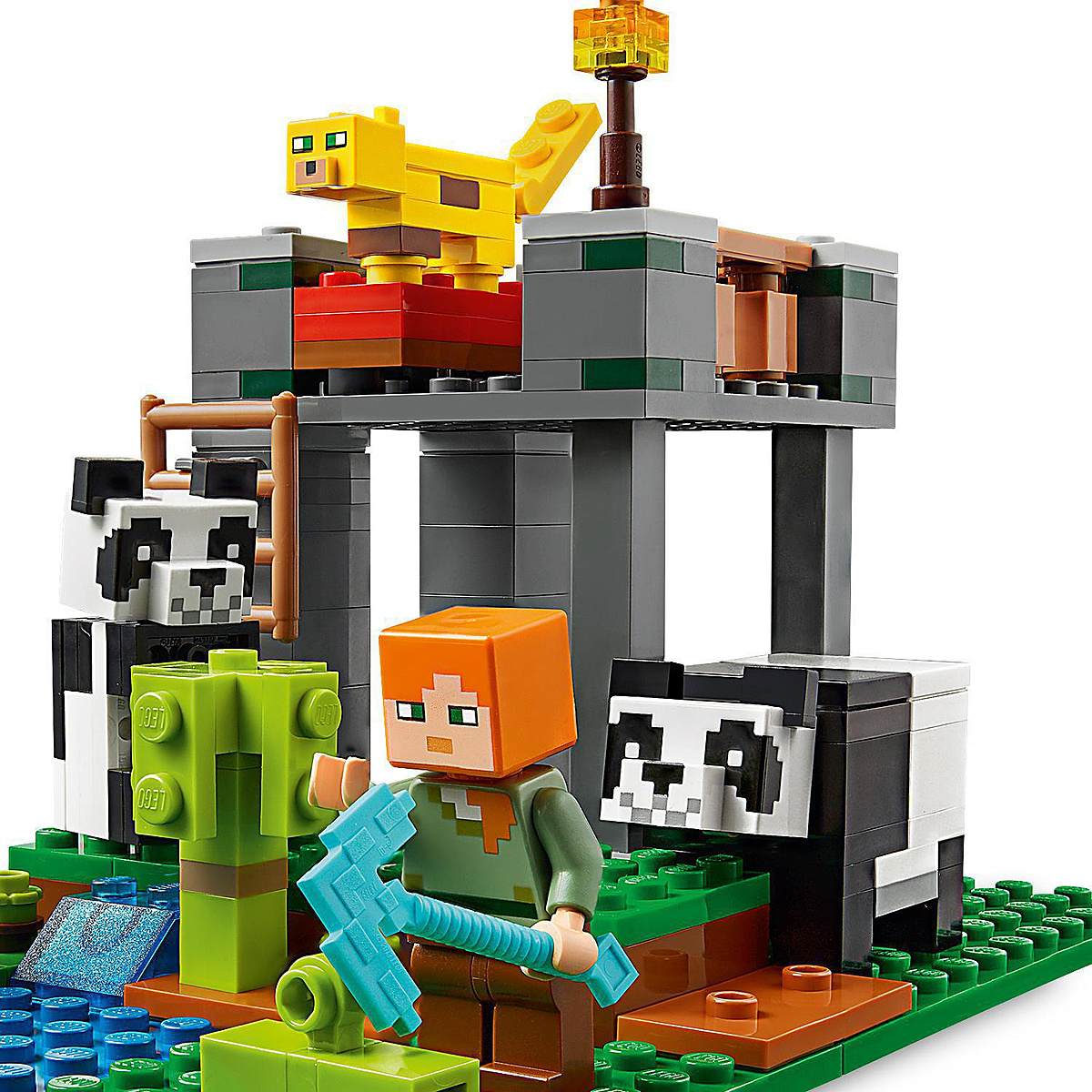 Des joueurs de Minecraft aimeraient prendre soin des pandas du jeu vidéo Minecraft ? Le set LEGO® Minecraft La garderie des pandas donne vie à ces aventures, en offrant aux enfants une expérience de jeu Minecraft dans le monde réel.Les enfants créent leurs propres histoires de Minecraft avec un set de construction LEGO !Les enfants âgés de 7 ans et plus prolongent leurs aventures Minecraft en ligne dans un environnement physique. Ils peuvent s'occuper du bébé panda et le divertir, préparer la garderie et le lit sur le toit, puis donner à manger à tout le monde. Le modèle inclut beaucoup de bambous à grignoter pour les pandas, ainsi quAlex avec un gâteau délicieux !Les adorables pandas rendent LEGO Minecraft encore plus magique ! Ce sont de formidables cadeaux pour les enfants. Les sets LEGO Minecraft placent entre les mains des enfants un univers infini de jeu en autonomie. En grâce à ces adorables pandas (nouveautés de janvier 2020), le jeu ne connaît pas de limite !