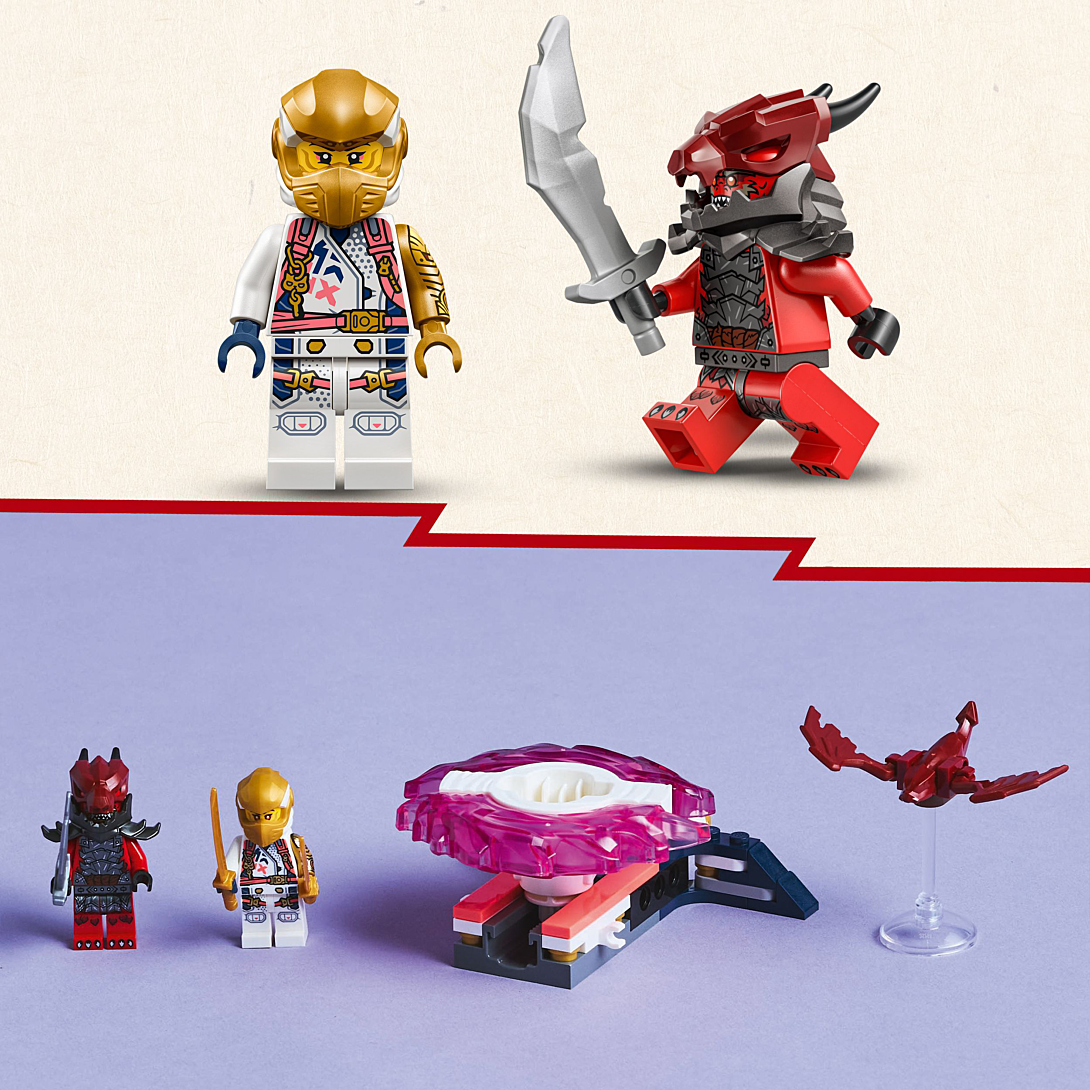 | Plus produit | Recréez l’action de la saison 3 de la série TV NINJAGO® Le soulèvement des dragons avec La toupie Spinjitzu du dragon de Sora LEGO® NINJAGO. |
