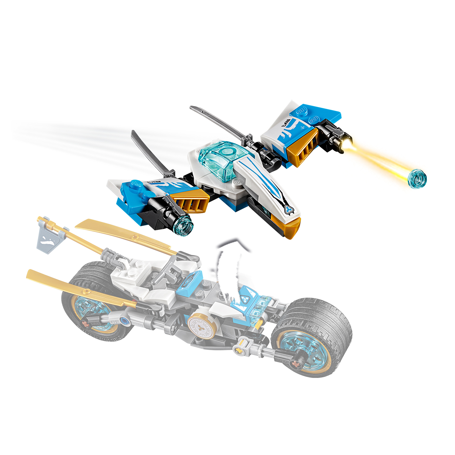 | La boîte contient | • Ce set inclut 2 figurines : Zane et Monsieur E. • La moto de Zane comprend un siège pour figurine, 2 fusils à tenons sur un drone amovible pliable, 2 lames dorées pliables, un drapeau. • La moto Oni comprend un siège pour figurine, 2 lames coupantes avec des pointes, 2 fusils à tenons, une roue avant avec des pointes, 2 épées amovibles et un élément de drapeau « Fils de Garmadon ». • L'accélèration la moto Oni enclenche les lames coupantes. • Inclut aussi un podium avec le masque Oni de la vengeance et le torse du démon de Monsieur E, et 2 katanas. • Le masque Oni de la vengeance se fixe à Monsieur E, ainsi que le torse du démon pour le rendre encore plus diabolique ! • Inclut l'arc et la flèche de Zane. • Recrée et joue des scènes célèbres de l’émission de télévision NINJAGO™ Maîtres du Spinjitzu. • Ce jouet super cool est adapté aux enfants de 7 à 14 ans. • La moto de Zane mesure plus de 9 cm de haut, 17 cm de long et 6 cm de large. • Le drone amovible mesure plus de 11 cm de long, 9 cm de large et moins de 2 cm de haut. • La moto Oni mesure plus de 9 cm de haut, 18 cm de long et 7 cm de large. • Le podium (masque et torse compris) mesure plus de 5 cm de haut, 4 cm de large et 3 cm de profondeur. |