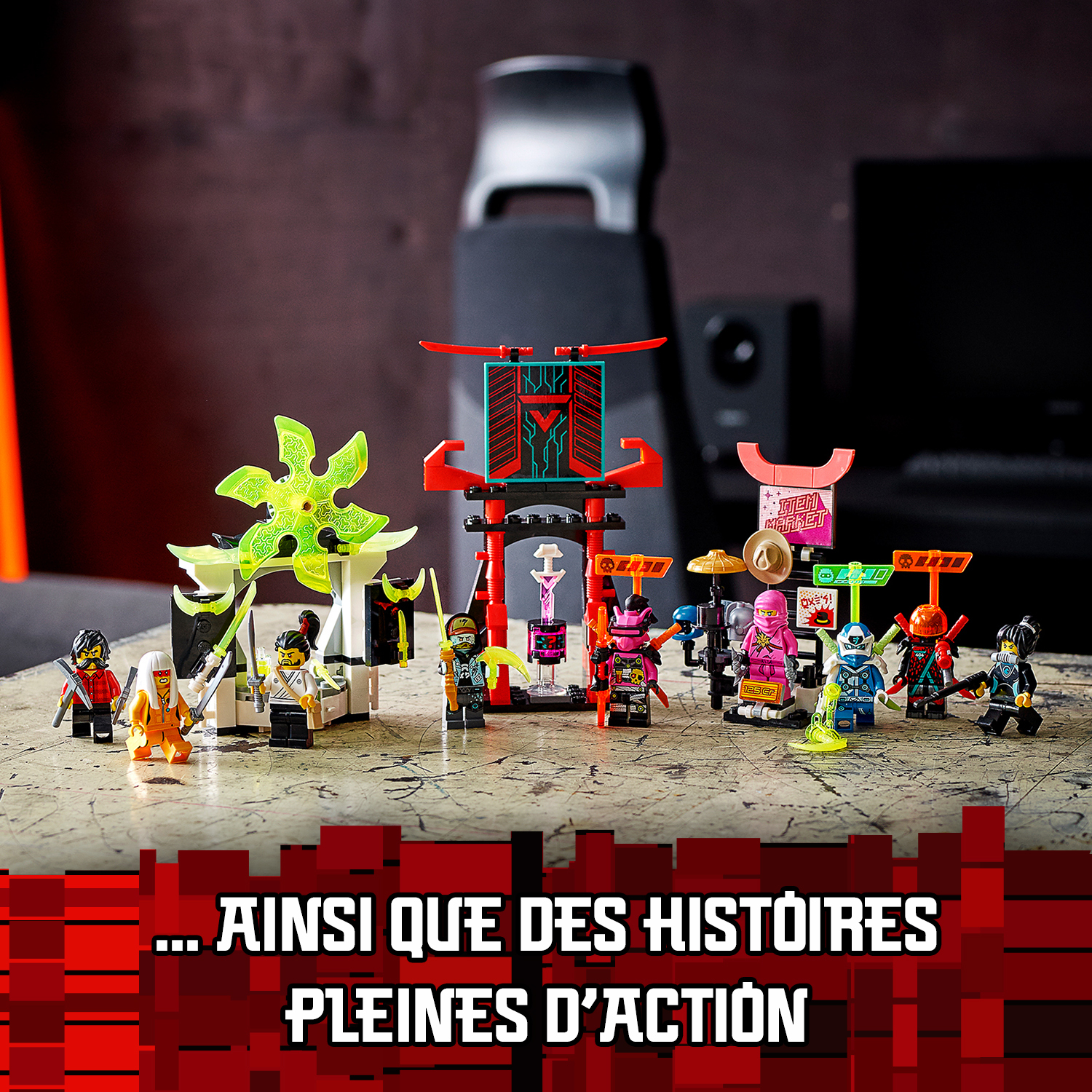 | Plus produit | Les fans de NINJAO® vont adorer recréer des scènes du jeu vidéo Prime Empire avec ce set passionnant incluant 9 figurines LEGO® et un marché. |