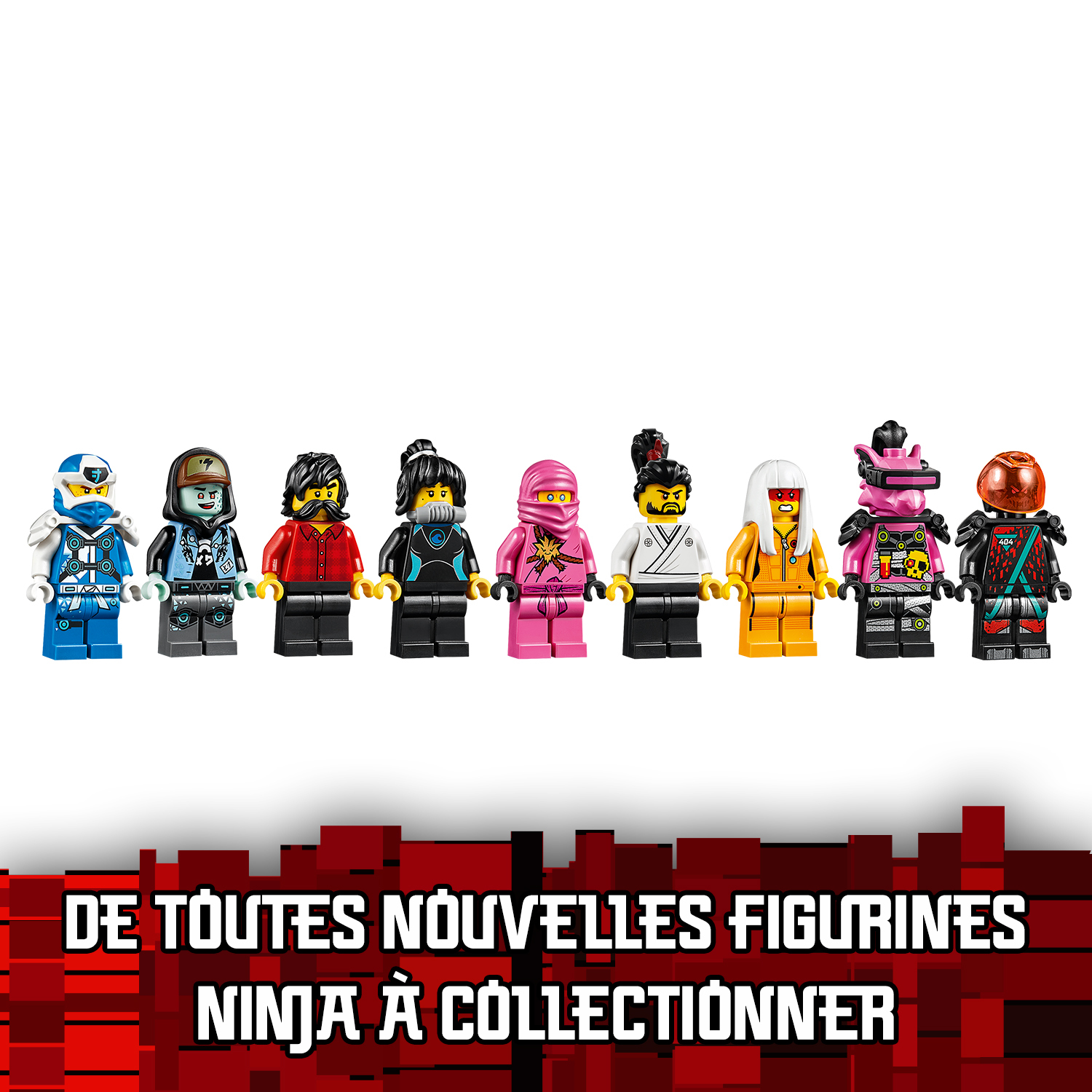 Voici un marché LEGO® NINJAGO® et 9 figurines LEGO, dont Digi Jay, Avatar Nya et une multitude dautres ninjas et méchants. Grâce à ces accessoires ninjas, les fans de NINJAGO peuvent sexprimer et recréer des scènes du marché de Prime Empire.