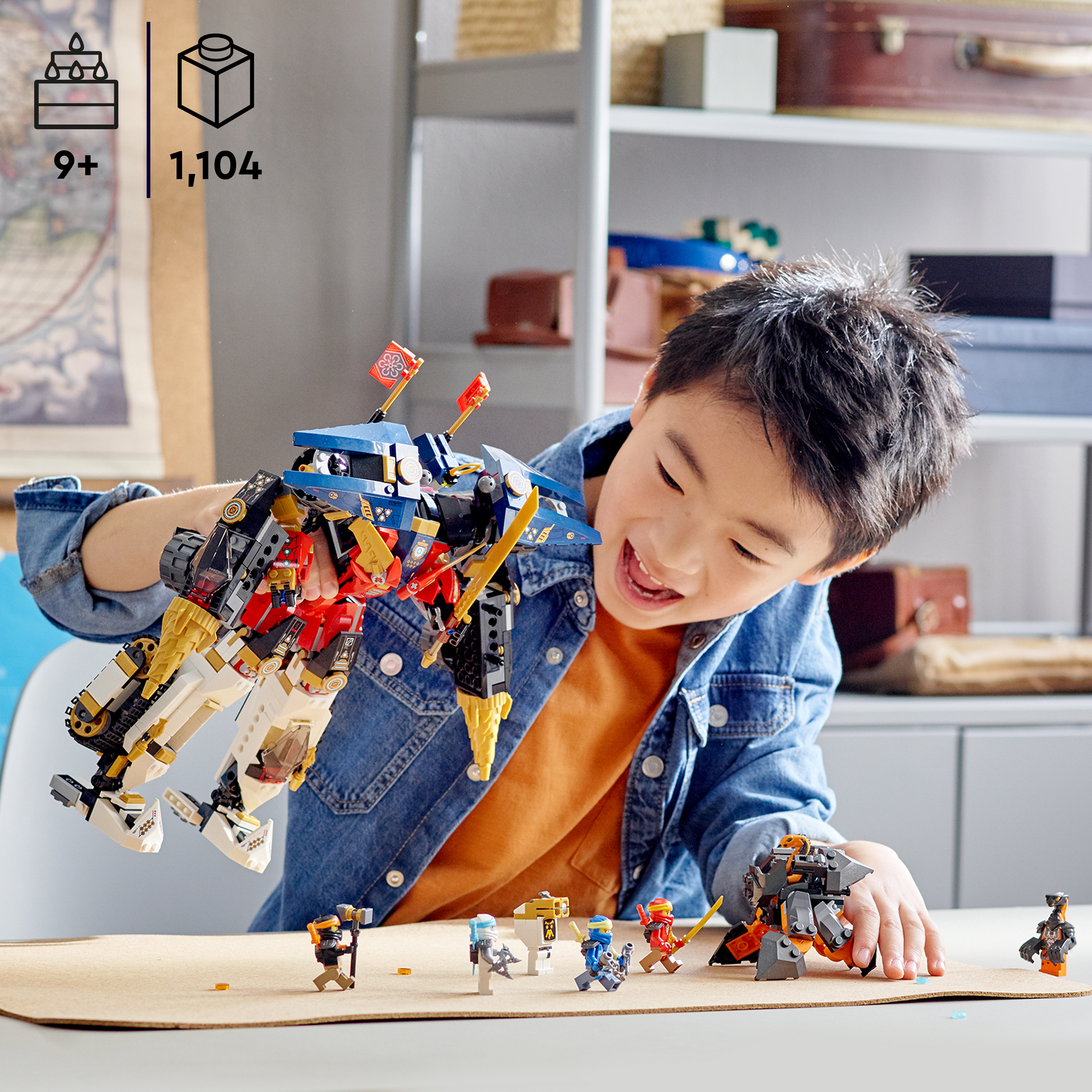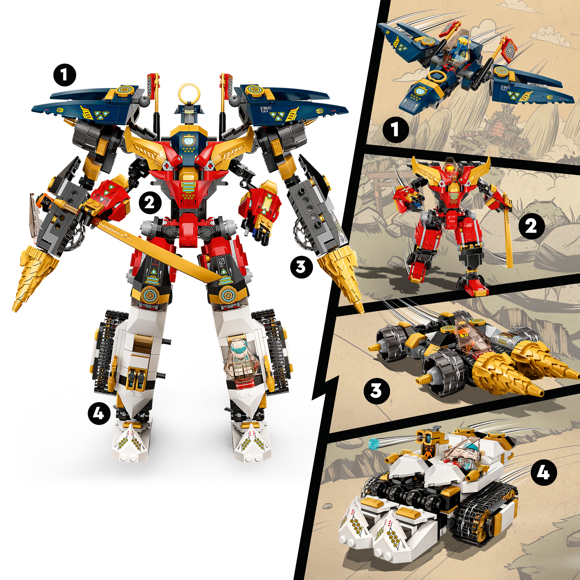 Les enfants de 9 ans et plus partent à laventure aux côtés des ninjas avec Le robot ultra combo ninja (71765). Ce jouet 4-en-1 est une incroyable machine de combat, comprenant un robot, une voiture, un tank et un avion, qui peuvent être utilisés séparément.