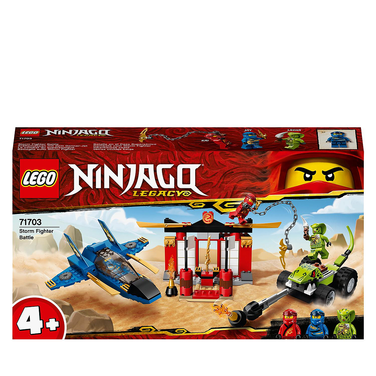 La boîte contient • Set LEGO® NINJAGO® Legacy avec Kai et Jay, pour vivre les aventures haletantes des premières saisons de la série télévisée et affronter Lasha. Ce set de bataille NINJAGO est idéal pour aider les enfants d’âge préscolaire à développer et perfectionner leurs talents de constructeurs. • Ce jouet amusant inclut des bases de démarrage NINJAGO® pour aider les petits ninjas à apprendre à construire et à créer leurs propres aventures NINJAGO®, avec les figurines de Kai, Jay, Lasha, une voiture, un avion et un temple accolé à une prison. • Le set NINJAGO® Legacy Le combat du supersonique comprend un superbe avion ninja avec des ailes rabattables et une voiture équipée d’un fusil. Il permet aux fans des ninjas de mettre en scène des batailles haletantes inspirées de la série télévisée NINJAGO Masters of Spinjitzu. • Ce set de combat NINJAGO® de 165 pièces avec figurines à construire offre une expérience de construction amusante aux enfants de 4 ans et plus et constitue un cadeau d'anniversaire ou de Noël très apprécié des jeunes passionnés de ninjas. • Nouveauté de juin 2020, ce jouet ninja est une réactualisation attendue avec impatience et inspirée des premières saisons de la série télévisée NINJAGO®. Le temple mesure 10 cm de haut, 13 cm de long et 20 cm de large, des dimensions idéales pour jouer partout. • Ce jouet à construire pour enfants ne nécessite pas de piles – le jeu commence immédiatement. Le set de combat NINJAGO® est uniquement alimenté par l'imagination des enfants, pour que les ninjas n’aient jamais besoin de demander un cessez-le-feu. • Le jouet amusant idéal pour permettre aux enfants d’âge préscolaire d’apprendre à construire. Des instructions faciles à suivre sont incluses pour aider les enfants à donner vie à ce combat NINJAGO® et à se lancer dans des aventures NINJAGO passionnantes. • Les sets à construire LEGO® 4+ embarquent les enfants dans un vaste univers composé de leurs films, personnages de série TV et héros du quotidien préférés, et les aident à comprendre la finalité des étapes de construction tout en renforçant leur confiance en eux. • Les briques de construction LEGO® répondent aux normes les plus élevées de l'industrie, et cela depuis 1958. Elles sont uniformes, compatibles et se séparent toujours facilement. • Ces briques et pièces LEGO® ont été testées sans relâche et répondent aux normes de sécurité et de qualité les plus élevées au monde, aussi bien sur Terre qu'à NINJAGO® City !