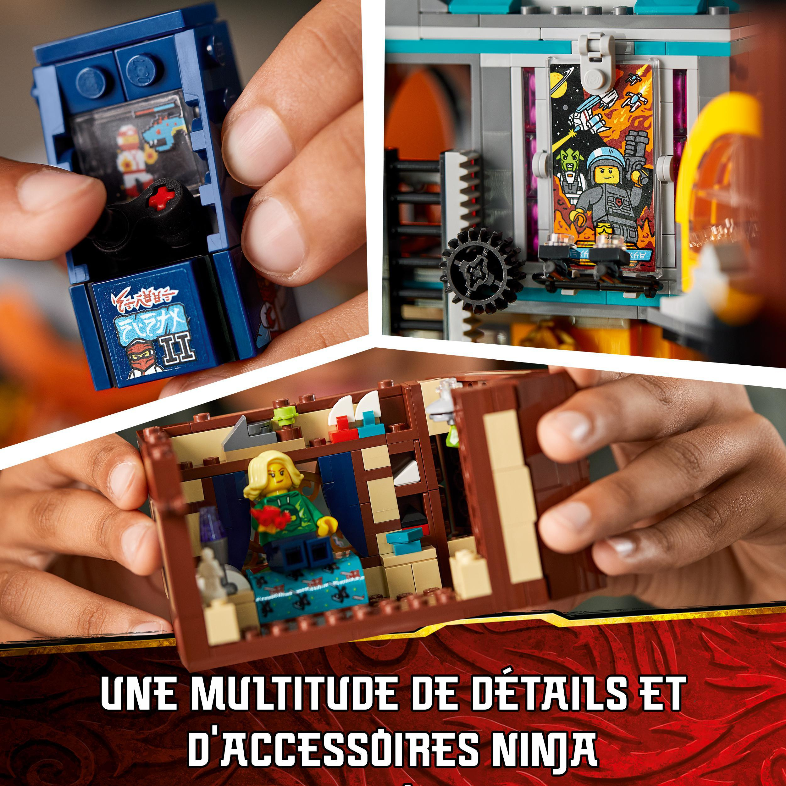 Les fans de NINJAGO vont adorer les 5 niveaux détaillés, qui incluent un glacier, le restaurant de nouilles de Chen, une salle de contrôle et un musée retraçant l’histoire des ninjas. Les 19 figurines de ce set (tous les ninjas et certains de leurs alliés) améliorent l’expérience de construction et de jeu.
