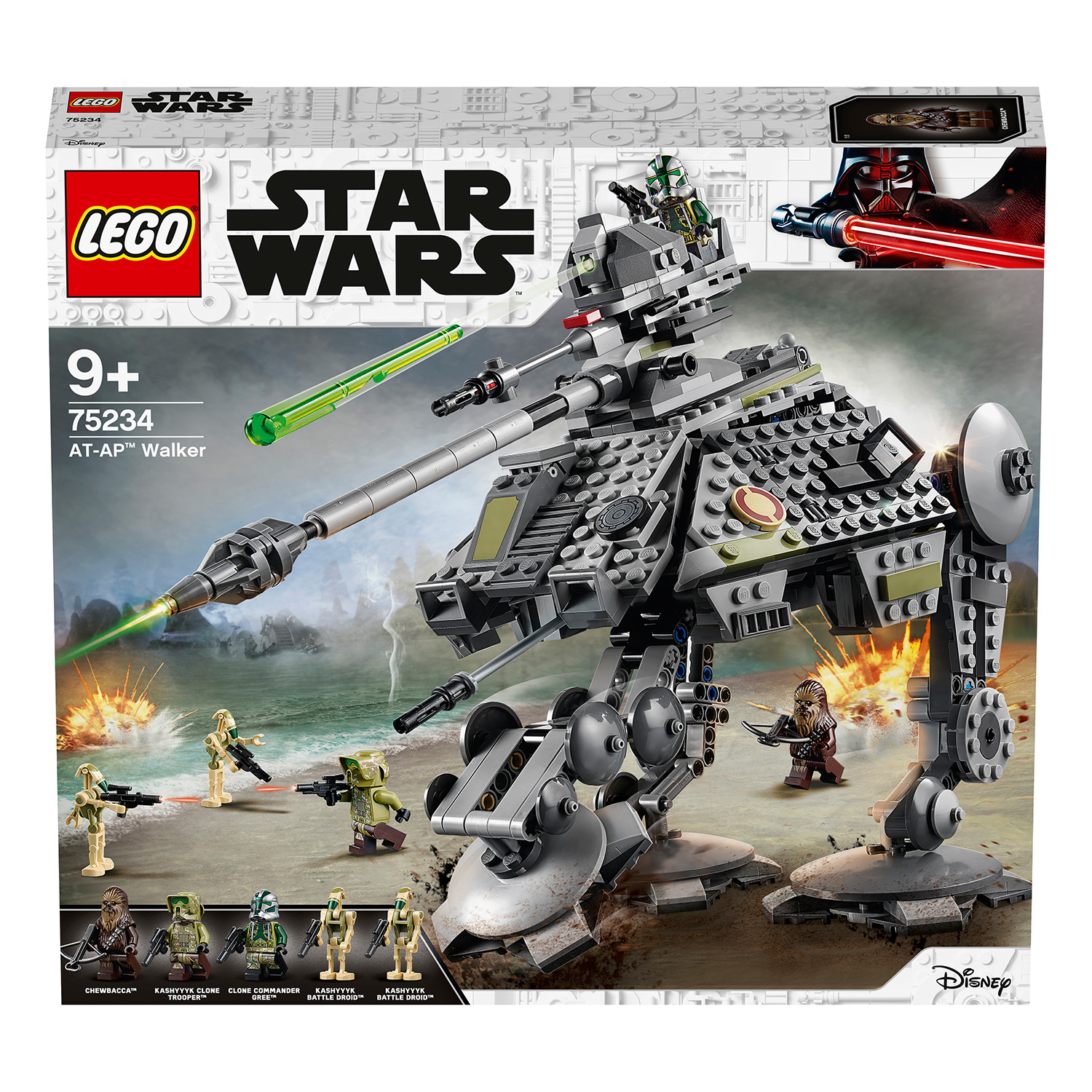 La collection s'agrandit avec l'ensemble AT-AP LEGO Star Wars 75234. Ce modèle dispose de pattes articulées, dune troisième patte rétractable, un dessus et des côtés qui souvrent et révèlent un poste de pilotage détaillé pour 2 minifigurines. Le modèle comprend également une tourelle supérieure tournante et élévatrice avec un siège pour une minifigurine et un fusil à tenons pour une action de bataille passionnante. Avec des minifigurines de Chewbacca, du Commandant Clone Gree, du soldat clone de Kashyyyk et 2 minifigurines LEGO de droïde de combat Kashyyyk, ce jouet de construction à collectionner est un cadeau danniversaire idéal pour les enfants.