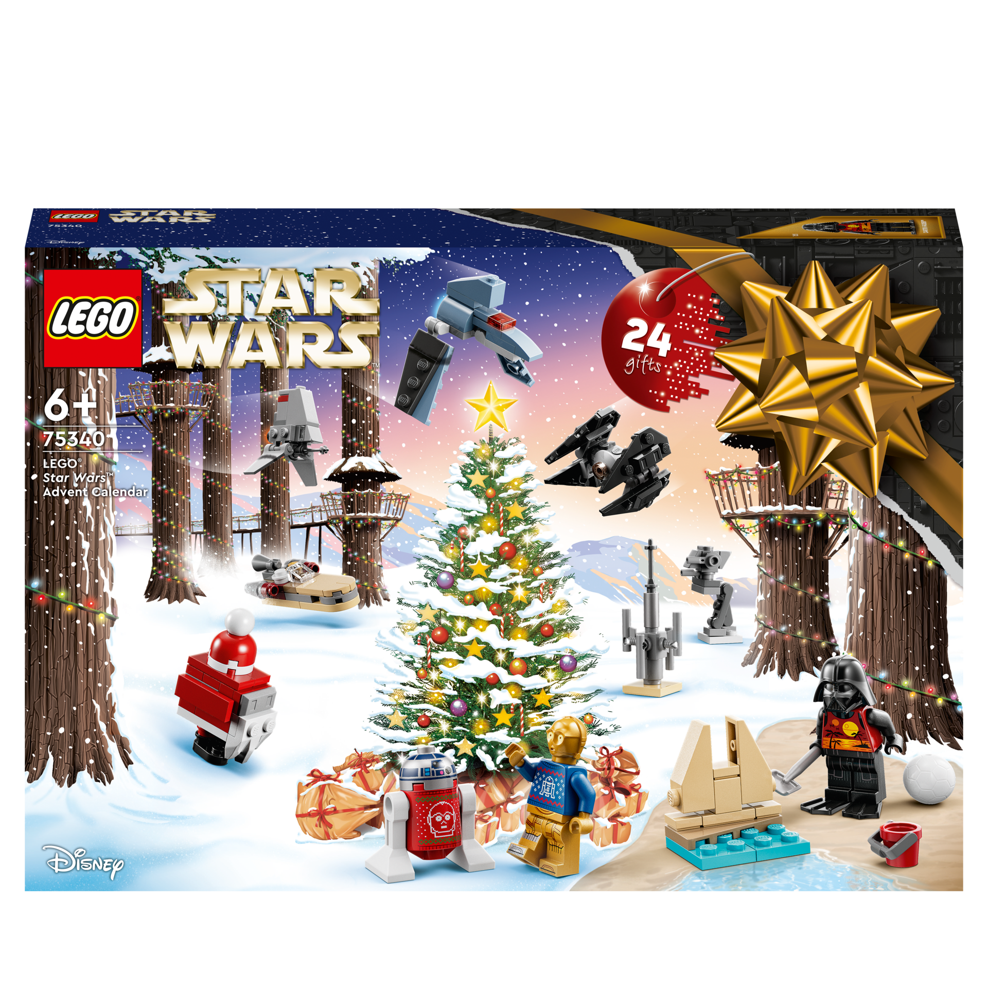 La boîte contient • Le calendrier de l’Avent 2022 LEGO® Star Wars™ (75340) – Créez une ambiance festive pendant les fêtes de fin d’année avec ce calendrier de l’Avent incluant des personnages Star Wars, des mini véhicules à construire ainsi que des accessoires • 8 personnages LEGO® Star Wars™ – C-3PO et R2-D2 dans des tenues de fêtes, Dark Vador en tenue d’été, ainsi que Luke Skywalker, un commandant des Clone Troopers, un Snowtrooper, un droïde de combat et un droïde Gonk • 10 mini-véhicules – Canonnière de la République, tri-chasseur droïde, transport d'assaut de classe Acclamator, navette du Bad Batch, Landspeeder de Luke, Skyhopper T-16, Landspeeder V-35, B-wing, intercepteur TIE et AT-ST de Hoth • 6 autres mini-constructions – Vaporisateur hydroponique, décor de plage, rack à munitions, tourelle de défense de Hoth, canon laser de Hoth et grotte de Wampa • Cadeau pour les enfants dès 6 ans – Offrez ce jeu de construction de 329 pièces pour faire patienter les enfants jusqu’à Noël. Les personnages et mini-constructions peuvent être combinés avec d’autres sets LEGO® Star Wars™ pour encore plus de jeu • Décoration pour les fêtes – Outre le rituel d’ouverture des fenêtres et les aventures haletantes à mettre en scène, le calendrier de l’Avent LEGO® Star Wars™ constitue une décoration colorée à exposer dans toute pièce • Sets de construction pour tous les âges – Les sets LEGO® Star Wars™ permettent aux enfants et aux fans adultes de rejouer des scènes culte, de créer leurs propres histoires ou tout simplement de construire et d’exposer des modèles réalistes • Qualité supérieure – Les briques et les pièces LEGO® sont conformes aux normes de qualité les plus strictes, afin de garantir qu’elles s’assemblent facilement et solidement • La sécurité avant tout – Les éléments LEGO® sont soumis à des tests de chute, de chaleur, d’écrasement et de torsion, puis analysés afin de s’assurer qu’ils répondent aux normes de sécurité les plus exigeantes
