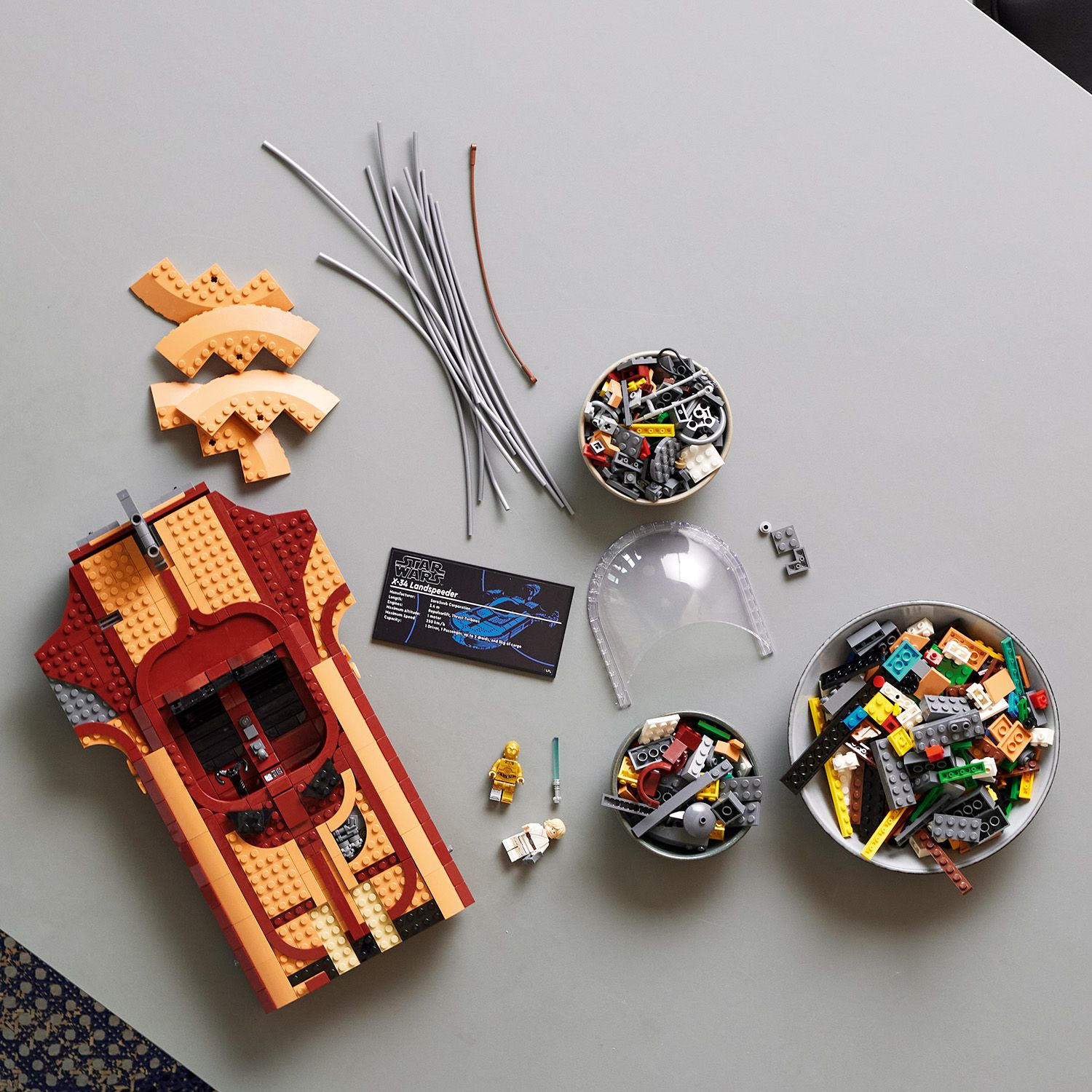 Ce véhicule à construire mesure plus de 49 cm de long et inclut un présentoir pour un effet « vol », ainsi qu’une plaque indiquant les données techniques du Landspeeder X-34 et 2 minifigurines LEGO : Luke Skywalker, avec un sabre laser et des électrojumelles, et C-3PO avec une nouvelle décoration (nouveauté de mai 2022).
