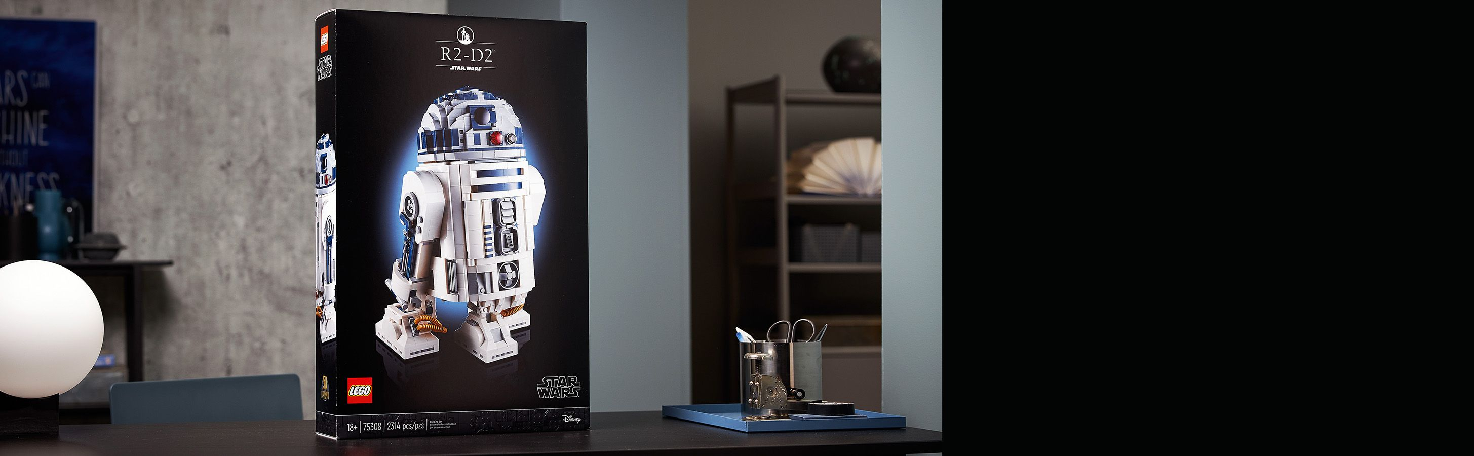 Ce superbe modèle s’accompagne d’un présentoir à construire orné d’une plaque descriptive, d’un petit droïde R2-D2 LEGO et d’une brique LEGO exclusive célébrant le 50e anniversaire de Lucasfilm, touche finale d’une fascinante pièce d’exposition pour la maison ou le bureau.