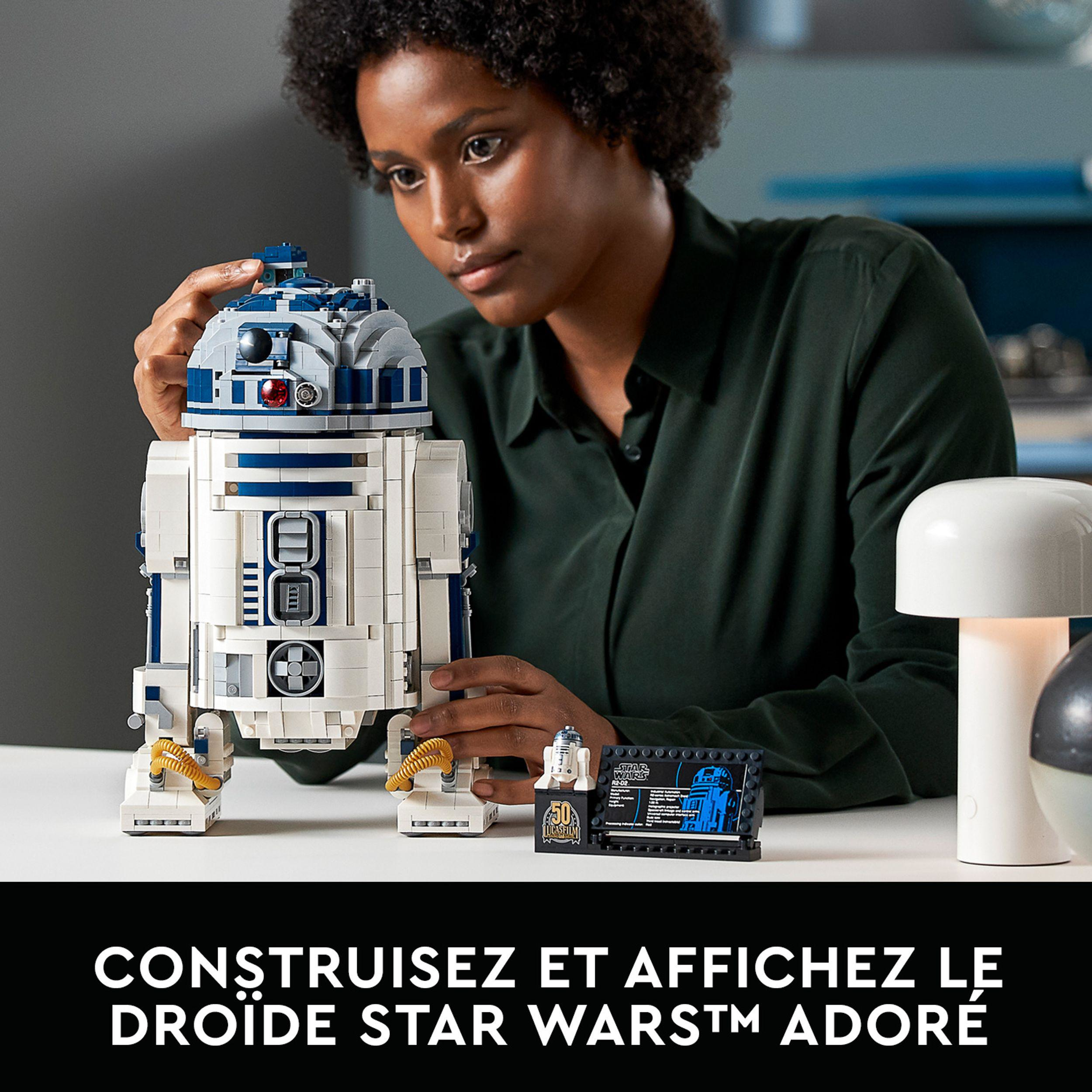 Revivez les moments culte de Star Wars™ en construisant ce droïde R2-D2 LEGO®. Cet incroyable modèle, nouveauté de mai 2021, regorge de détails réalistes, dont un pied central rétractable, une tête pivotante, des trappes frontales qui s’ouvrent et se déplient, un périscope que l’on peut sortir et tourner, ainsi que le sabre laser de Luke Skywalker dissimulé dans un compartiment de la tête.