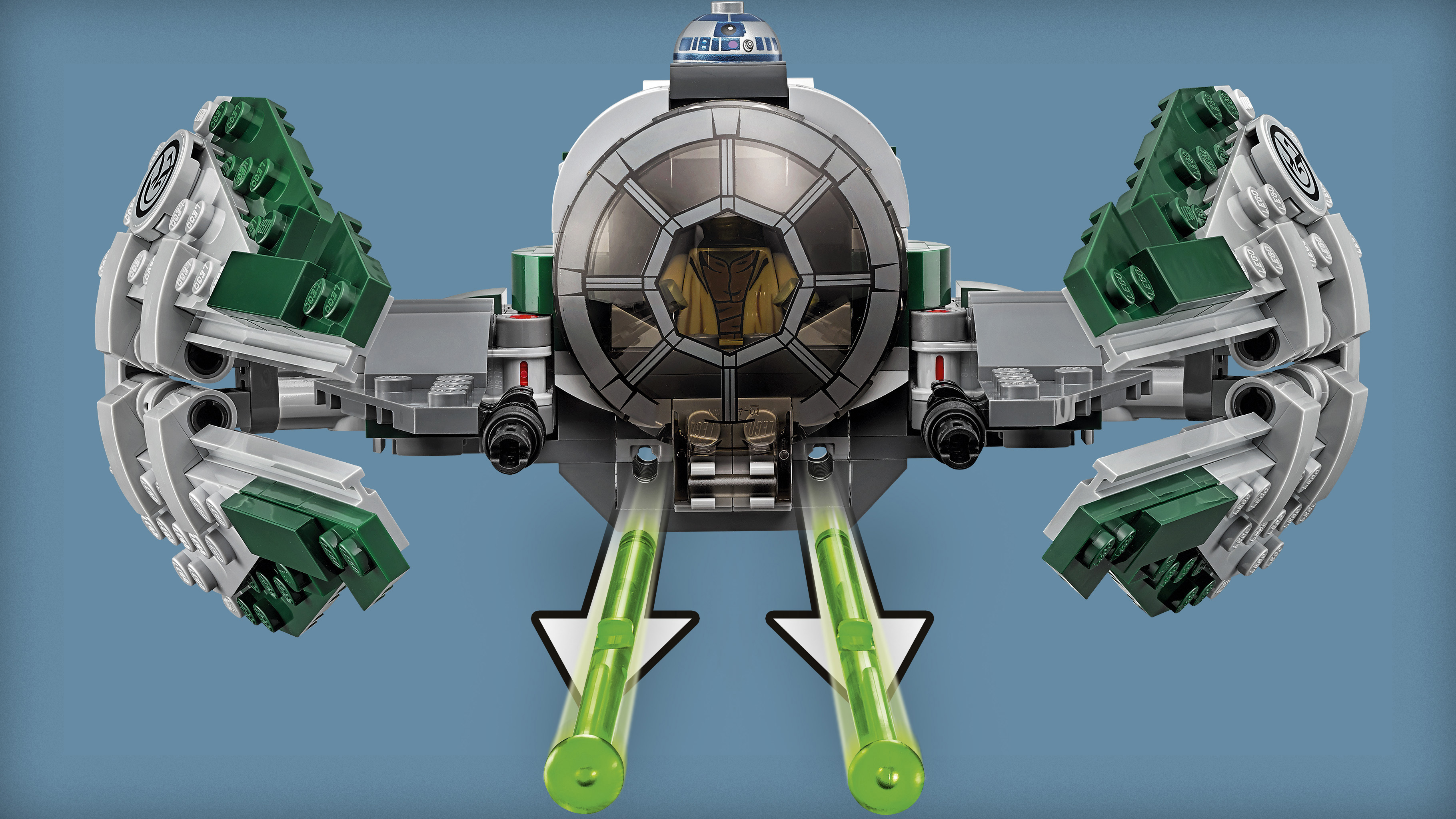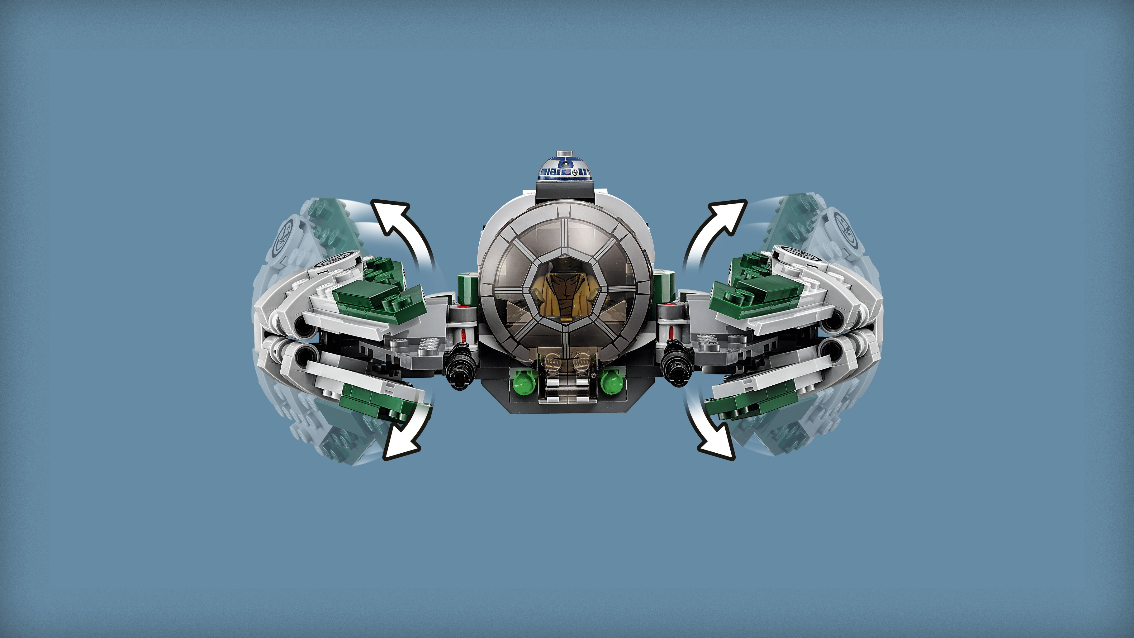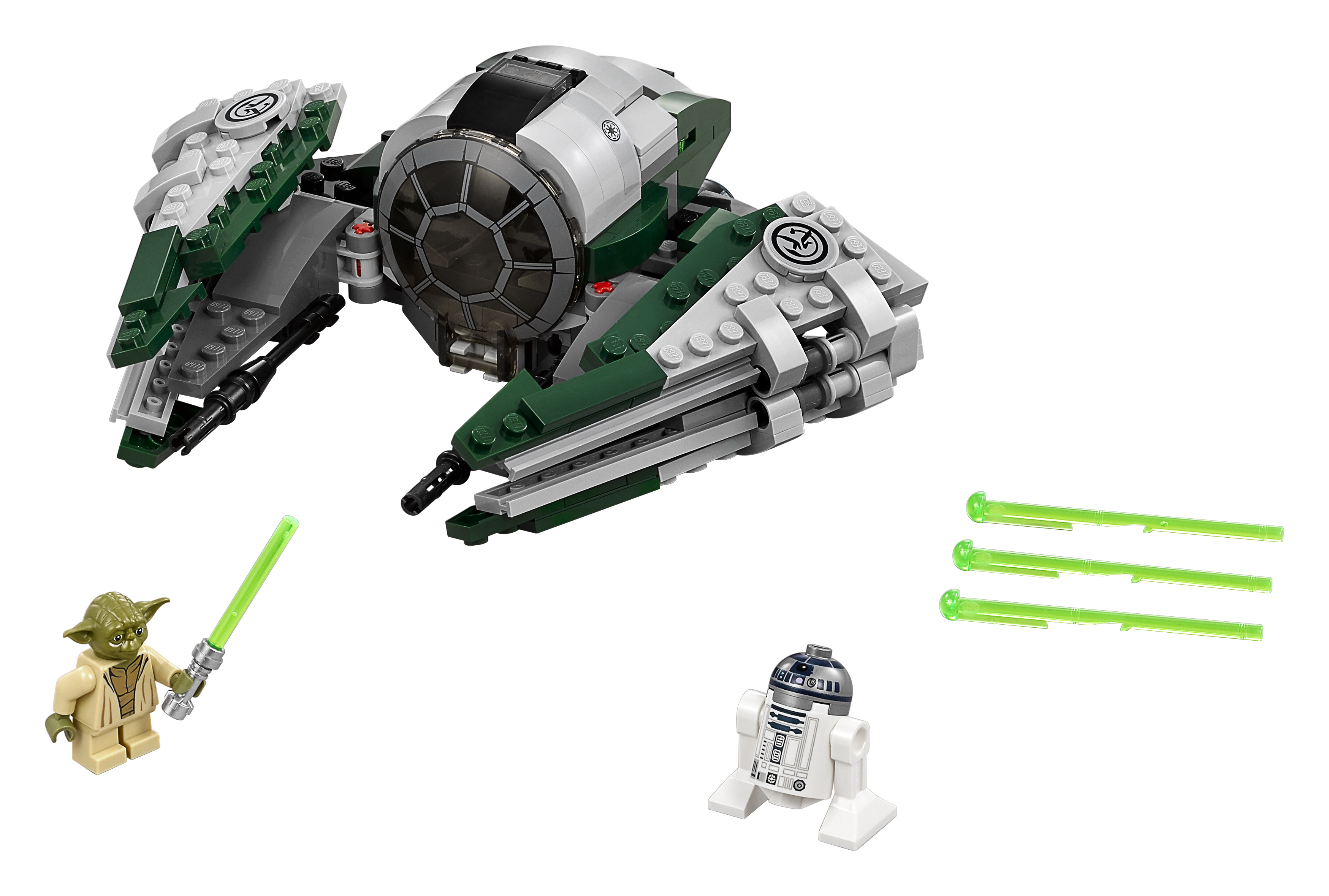 Le starfighter du Maître Jedi Yoda est idéal pour voyager vers des planètes lointaines. Place Yoda dans le cockpit et installe R2-D2. Replie ensuite les ailes, charge les fusils et prépare-toi à passer à laction !