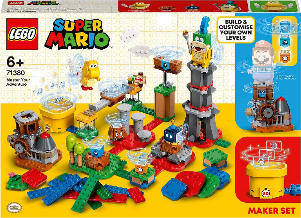 Les enfants peuvent transformer leur Pack de Démarrage et leurs Ensembles dextension LEGO® Super Mario pour créer des niveaux uniques avec LEGO® Super Mario Set de créateur Invente ton aventure (71380). Il contient une machine de personnalisation pour choisir les récompenses offertes par la brique d'action Temps et les 2 briques d'action Objet. Ce kit modulaire présente aussi une plateforme coulissante, des éléments LEGO colorés qui déclenchent différentes réactions chez LEGO® Mario (personnage non inclus) et un tuyau spécial « 30 » qui permet aux joueurs de reconstruire et de développer dincroyables nouveaux niveaux.Ennemis légendairesCe set inclut également Larry, un Goomba, un Bob-omb et un Paratroopa. Lappli LEGO Super Mario dotée doutils de visualisation facilite la construction et le jeu.Affrontements amusantsLes sets LEGO Super Mario à collectionner font entrer un personnage légendaire de Nintendo® dans le monde réel. Parfaits pour la compétition et le jeu solo.