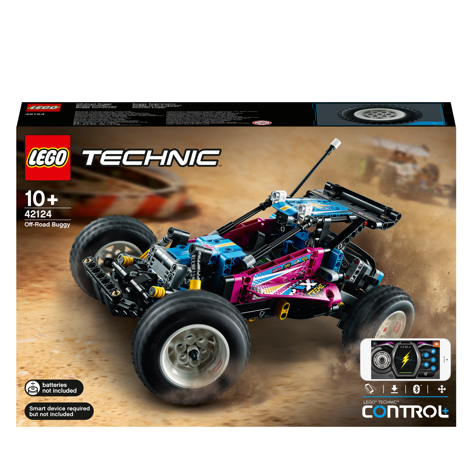 Ce Buggy tout-terrain LEGO® Technic (42124) replonge les fans de tous les âges, à partir de 10 ans, dans les années 80. Une fois assemblé, le modèle prend vie avec lapplication gratuite CONTROL+; Le buggy forme un angle à lavant pour plus de stabilité dans les figures, comme les voitures télécommandées classiques. Avec ses suspensions à lavant et larrière (une première pour LEGO Technic) et ses gros pneus, un capot qui souvre, une antenne et des autocollants rétro, cette voiture fait sensation.