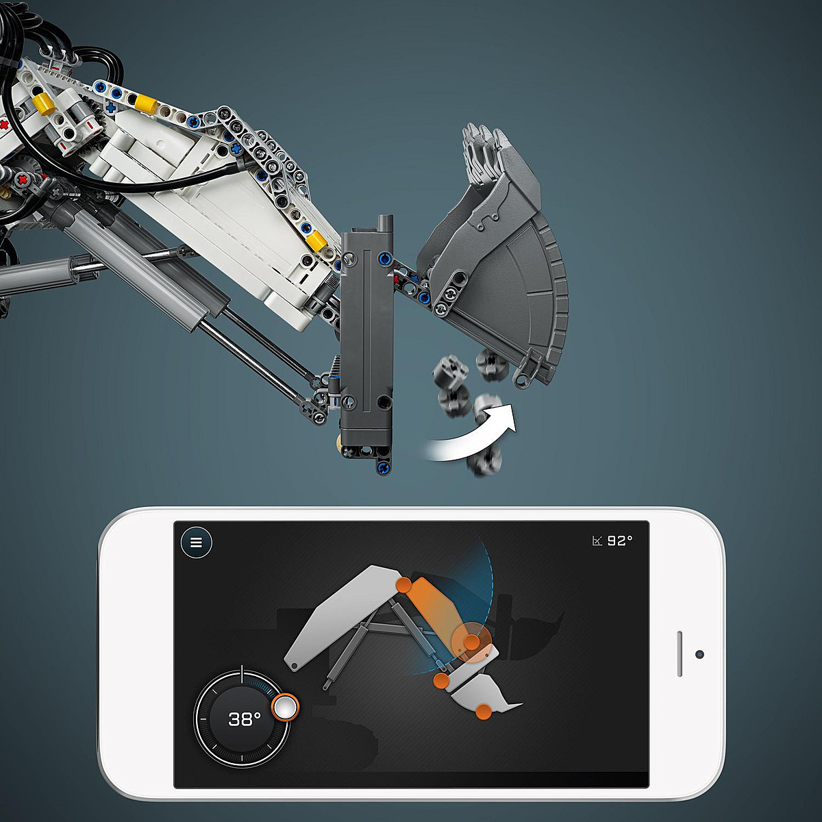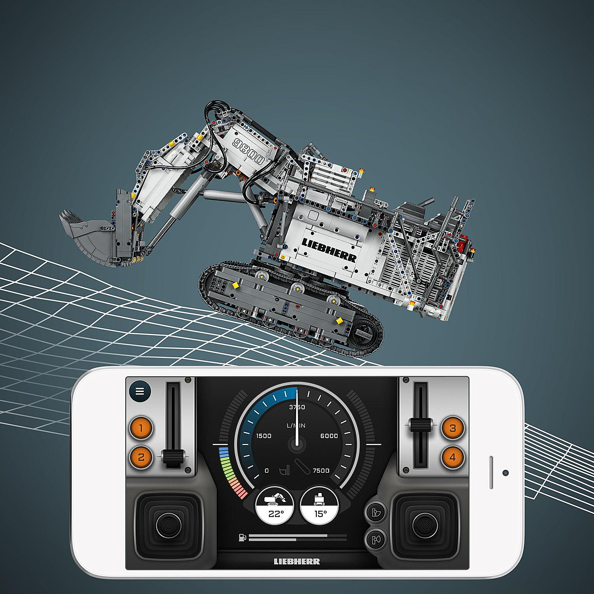 La boîte contient • Ce modèle de pelleteuse peut être commandé avec l'application LEGO® TECHNIC CONTROL+, pour une expérience de jeu des plus immersive et réaliste.• La pelleteuse Liebherr R 9800 LEGO® Technic peut être contrôlée via un smartphone ou une tablette, avec 4 écrans différents. Pour obtenir la liste des dispositifs compatibles : LEGO.com/devicecheck.• Commande multifonction : avancer, reculer, tourner, faire pivoter la superstructure, étendre, élever et abaisser le bras, ouvrir et incliner le godet, et consulter en temps réel des informations telles que la position du bras et de la superstructure, la consommation d'énergie et la distance parcourue.• Commande par touche unique : faire glisser le doigt sur l'écran en suivant l'un des motifs permet de faire bouger le bras selon la commande. • Mouvements personnalisés : l'utilisateur peut utiliser des commandes prédéfinies ou enregistrer les actions du modèle pour créer des séquences complexes de mouvements.• Défis et victoires : relever des défis permet de gagner des récompenses. • Une réplique de la pelleteuse Liebherr R 9800 avec des détails et des fonctions réalistes, complétée par des coloris authentiques agrémentés d'autocollants.• Inclut 3 moteurs XL, 4 moteurs L et 2 hubs sophistiqués contrôlés par Bluetooth.• Les hubs sophistiqués intègrent la technologie Bluetooth Low Energy (BLE) et comprennent un bouton d'activation, un capteur 6 axes ainsi que 4 ports de connexion.• L'application permet aux utilisateurs de se connecter à plusieurs hubs et d'effectuer des mouvements précis et réalistes.• L'application est téléchargeable sur l'App Store et Google Play. L'autorisation des parents est nécessaire pour pouvoir se connecter.• La pelleteuse télécommandée fonctionne avec des piles (non incluses). Le type et le nombre de piles nécessaires sont indiqués sur l'emballage.• Ce modèle LEGO® Technic à construire fait découvrir aux constructeurs LEGO des notions d'ingénierie avancées.• Non compatible avec les systèmes Power Functions.• La pelleteuse Liebherr R 9800 mesure plus de 39 cm de haut, 65 cm de long et 27 cm de large.
