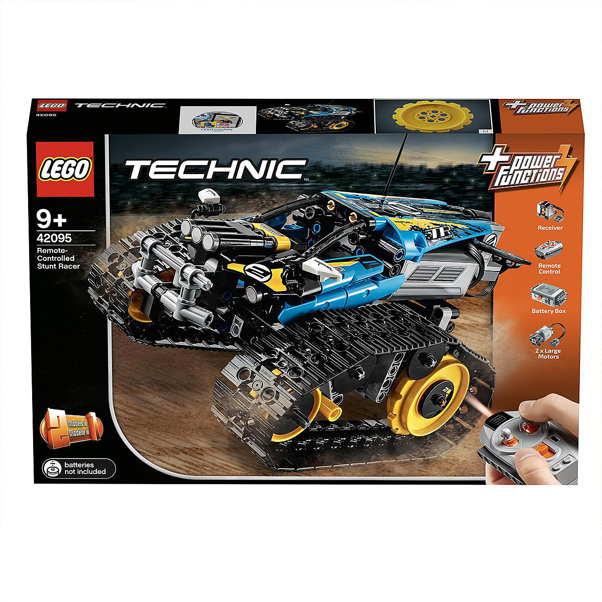 Faites des tours, des pirouettes et des cabrés à grande vitesse et traversez des terrains difficiles avec ce bolide télécommandé entièrement motorisé LEGO® Technic 42095. Ce modèle robuste comprend des chenilles qui adhèrent au sol avec de grands pignons arrière pour une accélération optimale, ainsi qu'un design moderne avec des coloris jaunes et bleus et des autocollants décoratifs. Conduisez en marche avant ou arrière, vers la gauche ou la droite et faites des tours à 360º. Reconstruisez ce véhicule à chenilles télécommandé 2 en 1 pour créer un bolide télécommandé pour une double expérience de construction et de jeu.