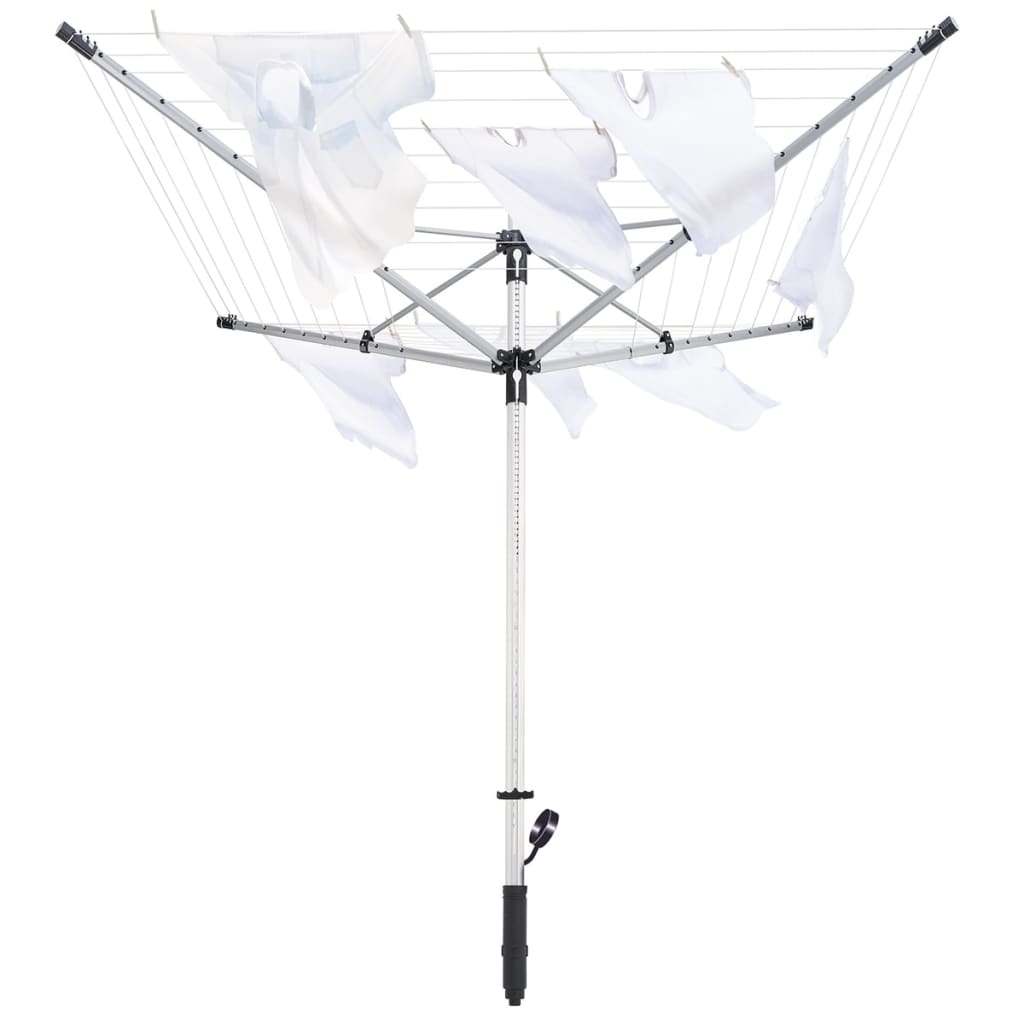 Le fil à linge du sèche-linge en forme de parapluie comporte suffisamment d'espace pour cinq charges de linges et il peut être ouvert rapidement et confortablement au moyen de la corde de traction. La hauteur du fil peut varier facultativement entre 85 et 180 cm. 12 crochets sur les bras porteurs permettent le séchage des chemises, des blouses et des T-shirts sur les cintres. Le support en acier et le support central rend le fil à linge rotatif stable, même lorsqu'il est complètement chargé.