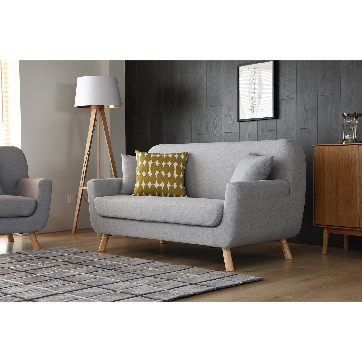 Lena 2P gris clair : Canapé scandinave 2 places gris clair + 2 coussins