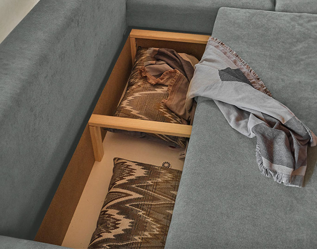 Fonctionnel grâce à ses rangements sous assise et à sa méridienne réversible à droite ou à gauche, le Lena s’adapte à votre espace de vie. En quelques secondes, transformez votre canapé en un lit de 210x130 cm. Pratique pour les petits espaces ou pour recevoir les amis !