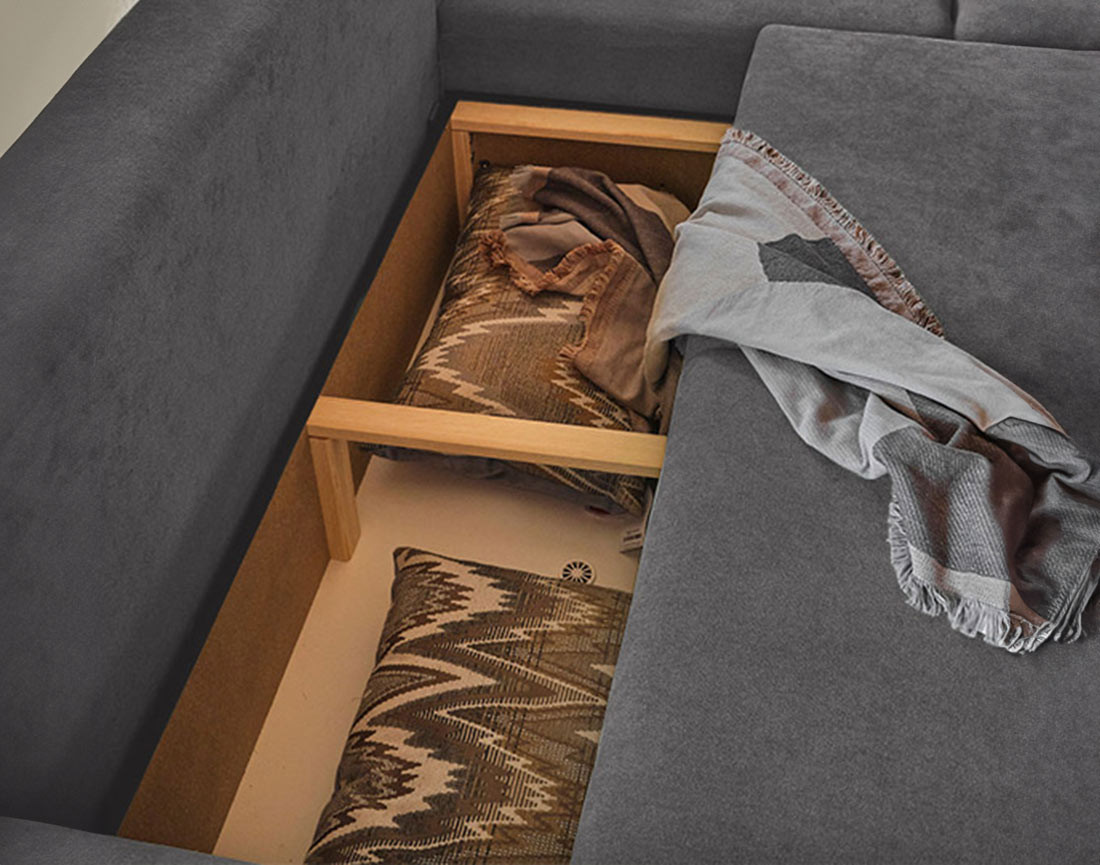 Fonctionnel grâce à ses rangements sous assise et à sa méridienne réversible à droite ou à gauche, le Lena s’adapte à votre espace de vie. En quelques secondes, transformez votre canapé en un lit de 210x130 cm. Pratique pour les petits espaces ou pour recevoir les amis !