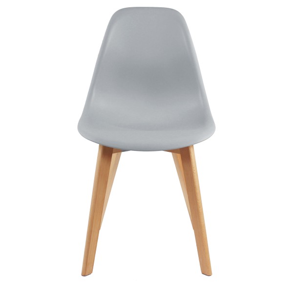 Un style gagnant avec des pieds bois massifs naturels et une assise en polypropylène grise