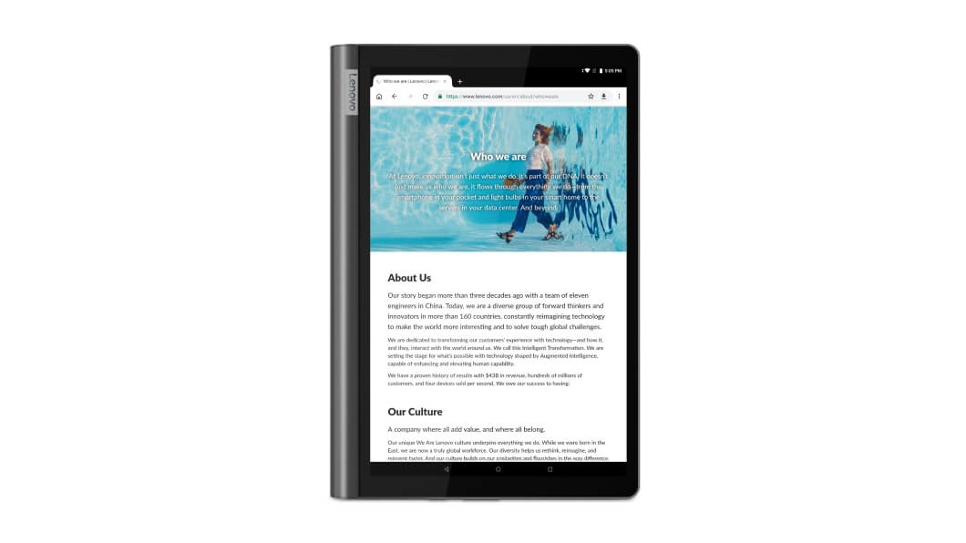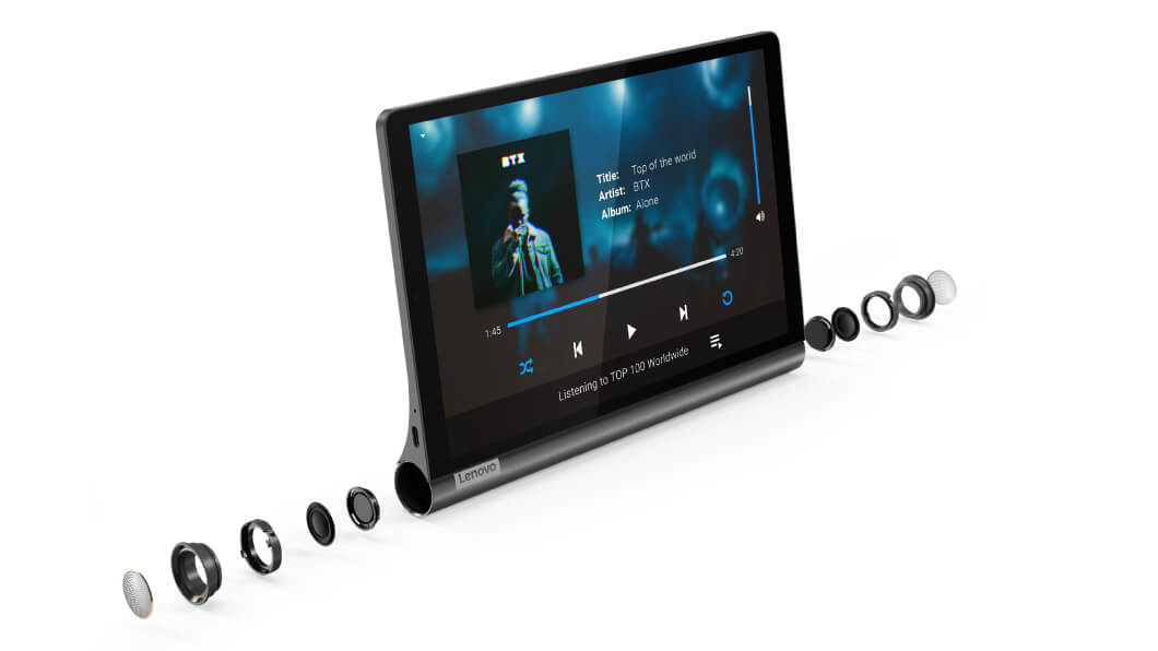 Lenovo Yoga Smart Tab . Taille de l'écran: 25,6 cm (10.1"), Résolution de l'écran: 1920 x 1200 pixels. Capacité de stockage interne: 64 Go. Fréquence du processeur: 2 GHz, Famille de processeur: Qualcomm Snapdragon. Mémoire interne: 4 Go. Résolution de la caméra arrière (numerique): 8 MP, Type de caméra arrière: Caméra unique, Résolution de la caméra avant (numerique): 5 MP, Caméra avant. Norme Wi-Fi: Wi-Fi 5 (802.11ac). Lecteur de cartes mémoires intégré. Poids: 570 g. Couleur du produit: Gris