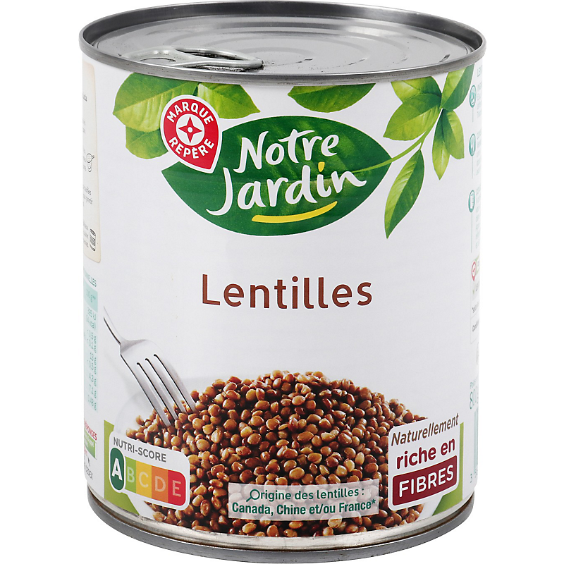 Ingrédients : Lentilles trempées, eau, sel, affermissant : chlorure de calcium.