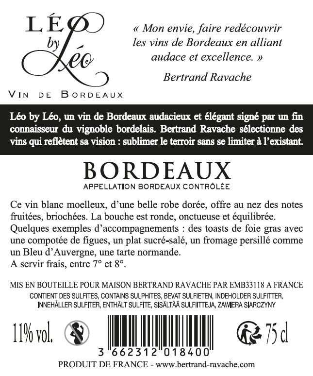 Léo by Léo, 2022 - Bordeaux Blanc AOP - Blanc Moelleux - 75 cl