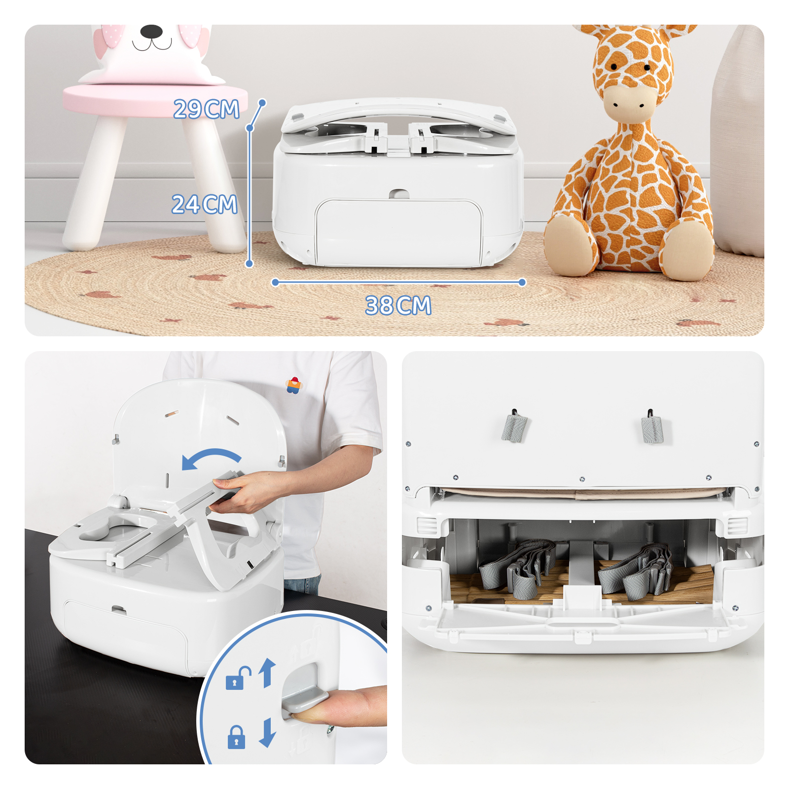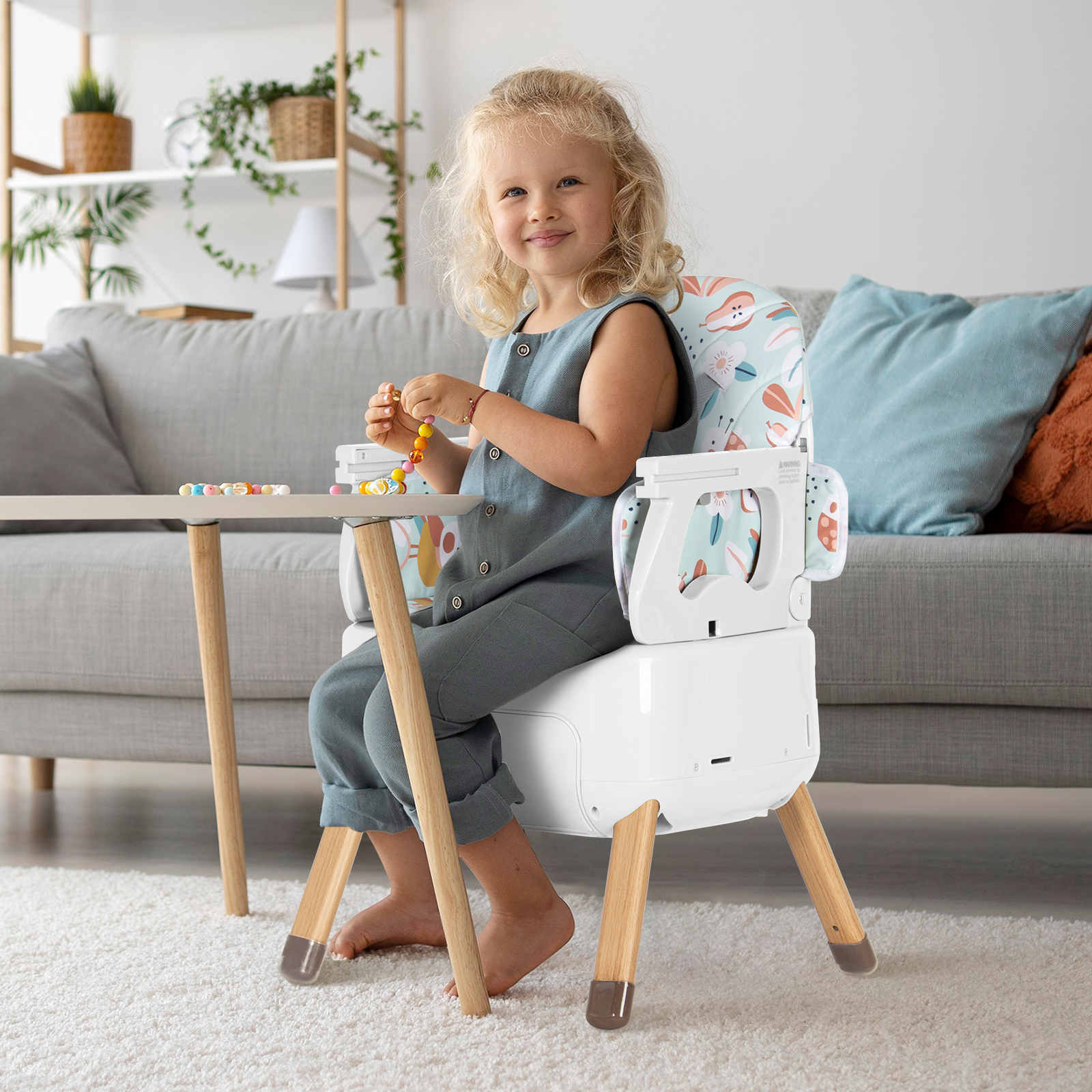 CHAISE HAUTE 4 EN 1 POUR BÉBÉS ET ENFANTS - Peut être utilisée comme chaise haute (avec 2 options de hauteur) ou comme siège d'appoint pour les bébés de 6 mois à 3 ans. Elle peut également être convertie en petite chaise pour les enfants jusqu'à 6 ans (max. 25 kg) en retirant le plateau. HAUTEUR AJUSTABLE - Personnalisez la chaise avec 2 hauteurs différentes pour répondre à vos besoins quotidiens. La chaise haute pour bébé s'adapte à votre table à manger ou à tout autre plan de travail, afin que votre enfant soit toujours à la hauteur idéale pour les repas en famille. CONFORT & SÉCURITÉ - Grâce à la structure pyramidale stable, aux matériaux de haute qualité, à l'assise rembourrée respirante, aux patins de pieds antidérapants, au déflecteur de sécurité anti-chute et au harnais à 5 points, cette chaise haute pour bébé garantit une sécurité totale pour votre bébé pendant les repas. PRATIQUE - Le plateau et le coussin d'assise sont amovibles pour un nettoyage facile. Le repose-pieds pliable et les accoudoirs plus larges sont adaptés aux besoins des bébés. ENCOMBREMENT - La chaise haute est compacte et pliable, ce qui la rend idéale pour les petits espaces et pour un rangement pratique. Avec une taille pliée de seulement 40*30*25CM,et un poids net de 4.9 kg, elle est facile à transporter !