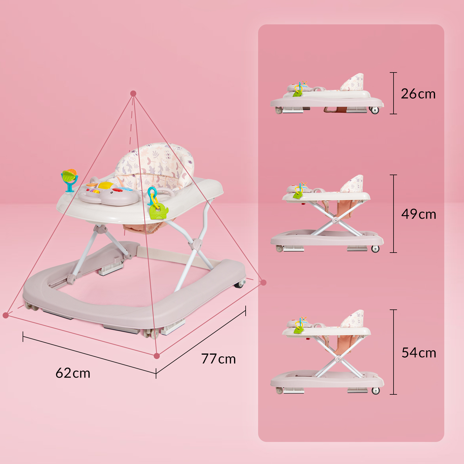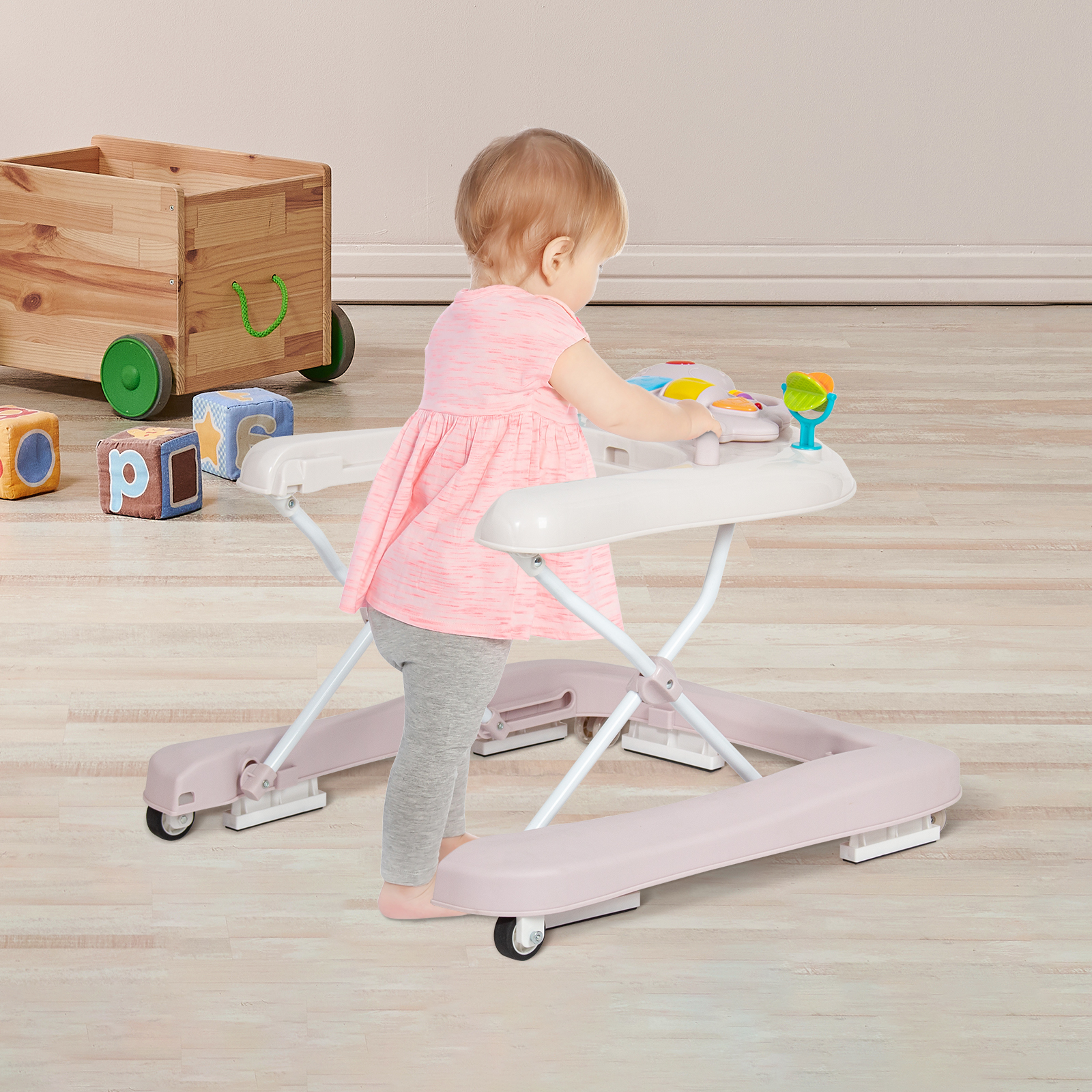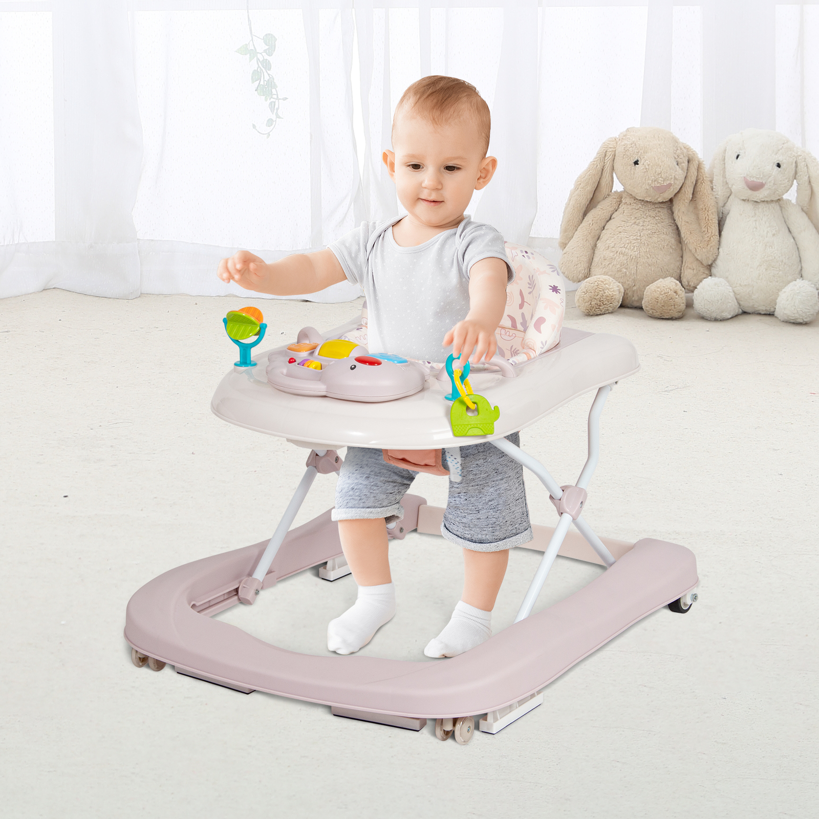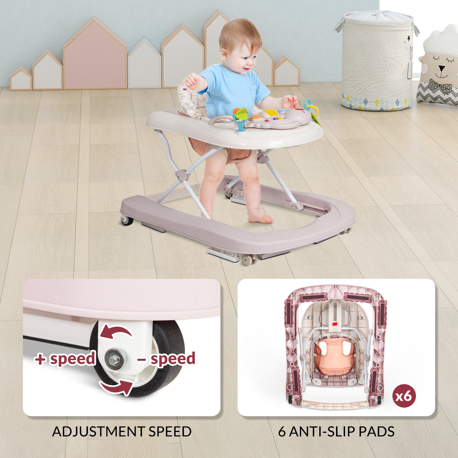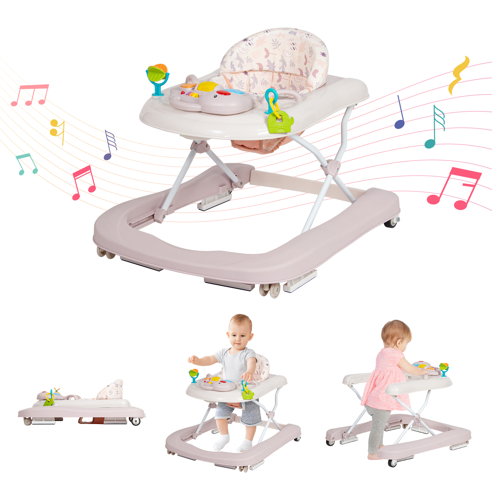 Libellé Leogreen Trotteur pour bébé 3 en 1 avec plateau d'activités musical amovible, Trotteur bébé facilement pliable, babywalker à vitesse réglable, hauteu