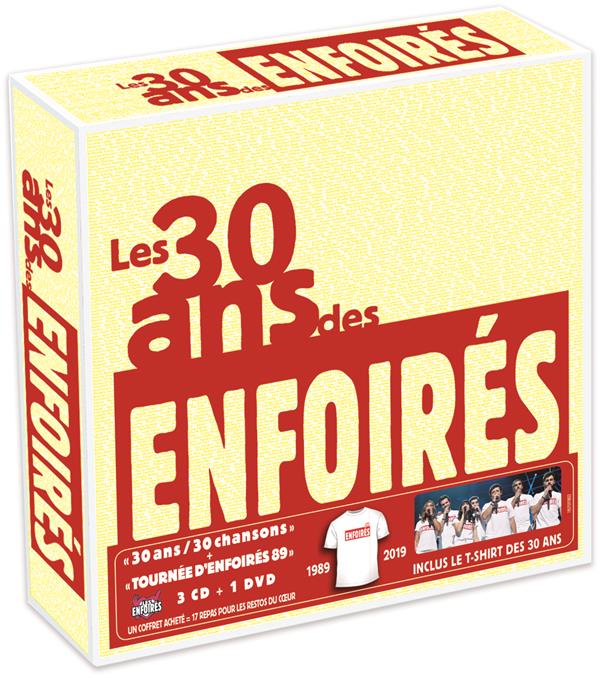 Les 30 ans des Enfoirés 1989-2019, c'est 30 ans d'histoire(s) et de partage à travers vos 30 chansons préférées, la Tournée d'Enfoirés 1989 avec laquelle tout a commencé (en version audio et pour la 1ére fois en DVD vidéo), 9 singles emblématiques en versions karaoké et le T-shirt anniversaire 1989-2019 (porté par les artistes lors du final de l'édition de cette année). Plus que jamais les Restos du coeur ont besoin de vous !