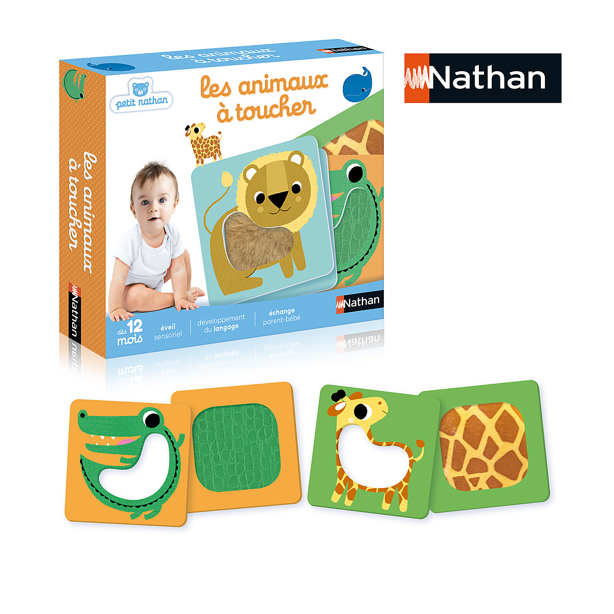 | La boîte contient | - 12 grandes cartes (10x10cm) dont 6 avec une matière à toucher |