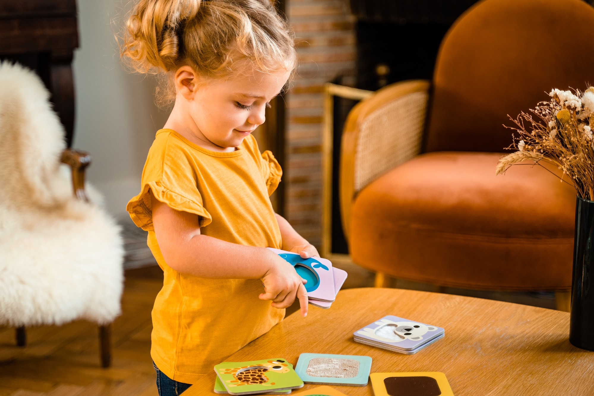 toucher, caresser, manipuler: le bébé découvre les animaux par des expériences multisensorielles. Une activité motrice, de mémoire et d'association. Un jeu à partager avec les parents, qui sollicite l'attention conjointe. Thème: les animaux sauvages