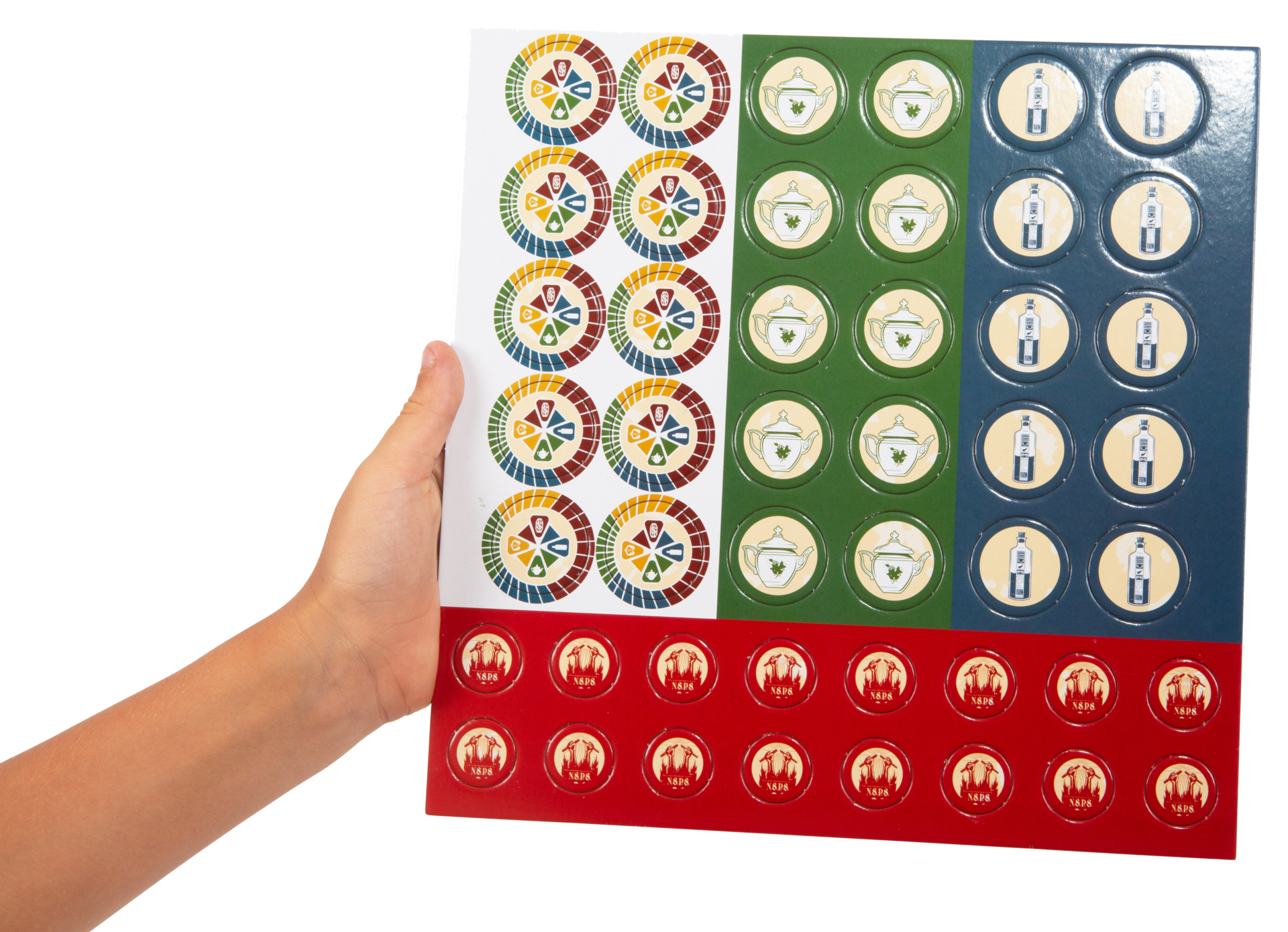 | La boîte contient | 1 plateau – 110 cartes – 6 pions – 92 jetons – 6 cartes personnage |