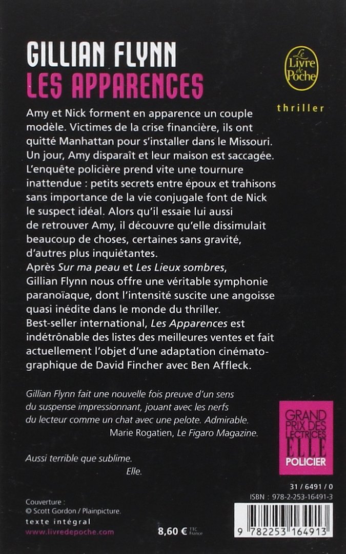 Amy et Nick forment en apparence un couple modèle. Victimes de la crise financière, ils ont quitté Manhattan pour s'installer dans le Missouri. Un jour, Amy disparaît et leur maison est saccagée. L'enquête policière prend vite une tournure inattendue : petits secrets entre époux et trahisons sans importance de la vie conjugale font de Nick le suspect idéal. Alors qu'il essaie lui aussi de retrouver Amy, il découvre qu'elle dissimulait beaucoup de choses, certaines sans gravité, d'autres plus inquiétantes. Après Sur ma peau et Les Lieux sombres, Gillian Flynn nous offre une véritable symphonie paranoïaque, dont l'intensité suscite une angoisse quasi inédite dans le monde du thriller.
